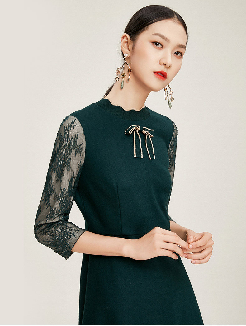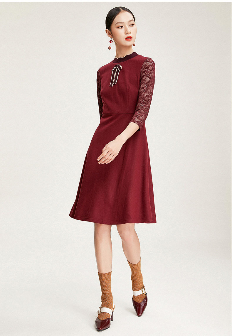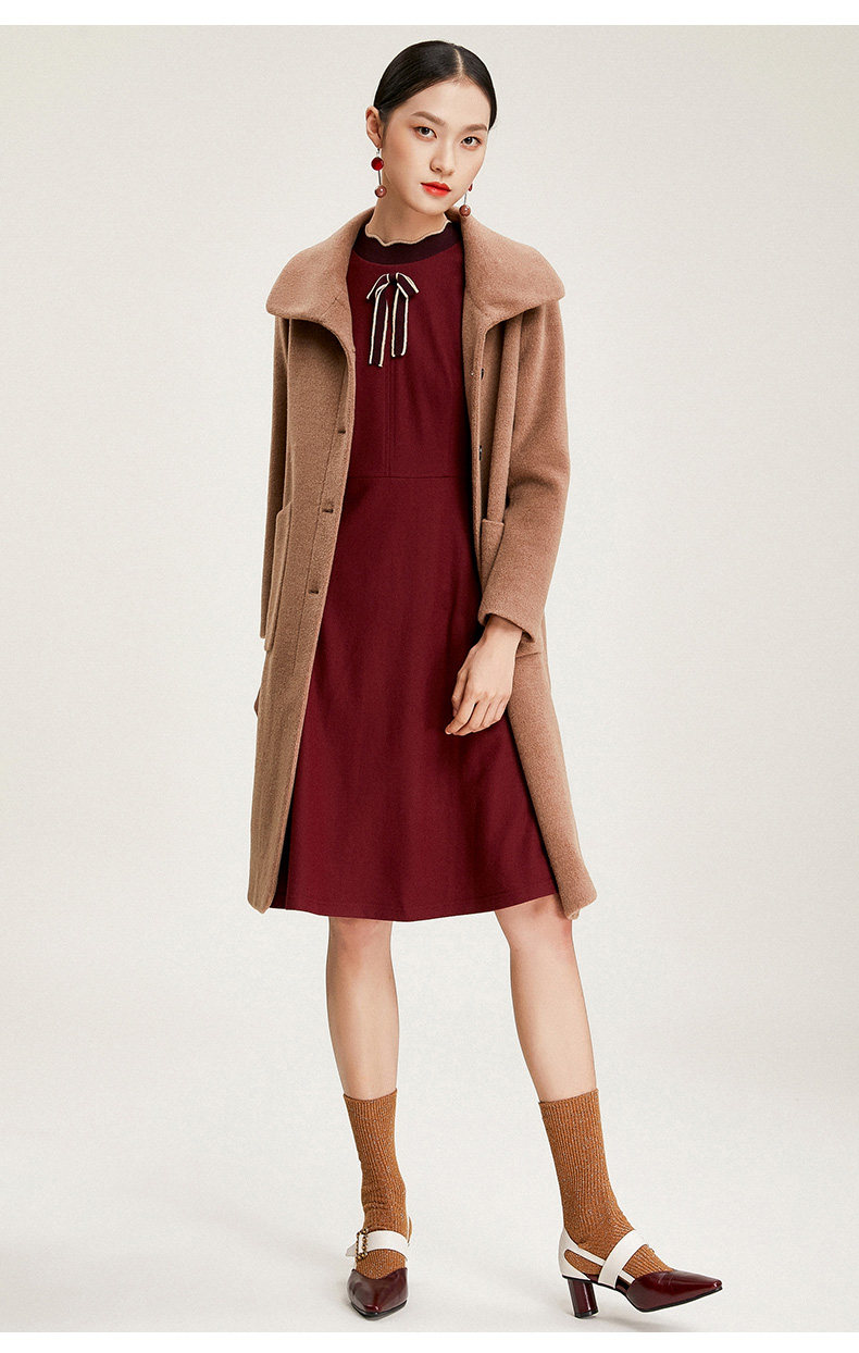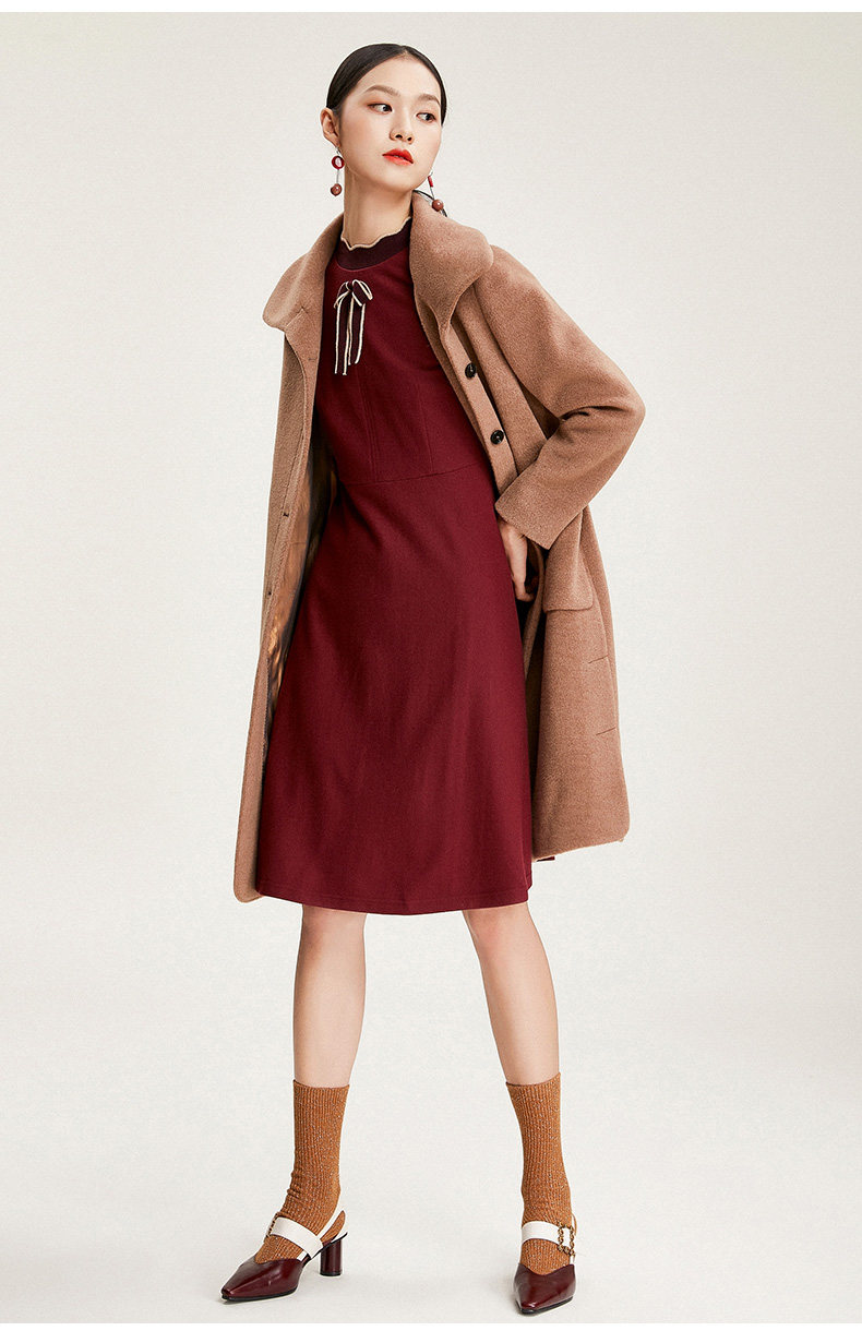 【两色可选】乔万尼秋冬羊毛连衣裙女气质流行a字裙中长款打底裙EN4E702