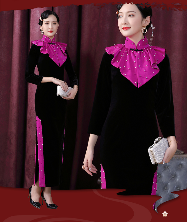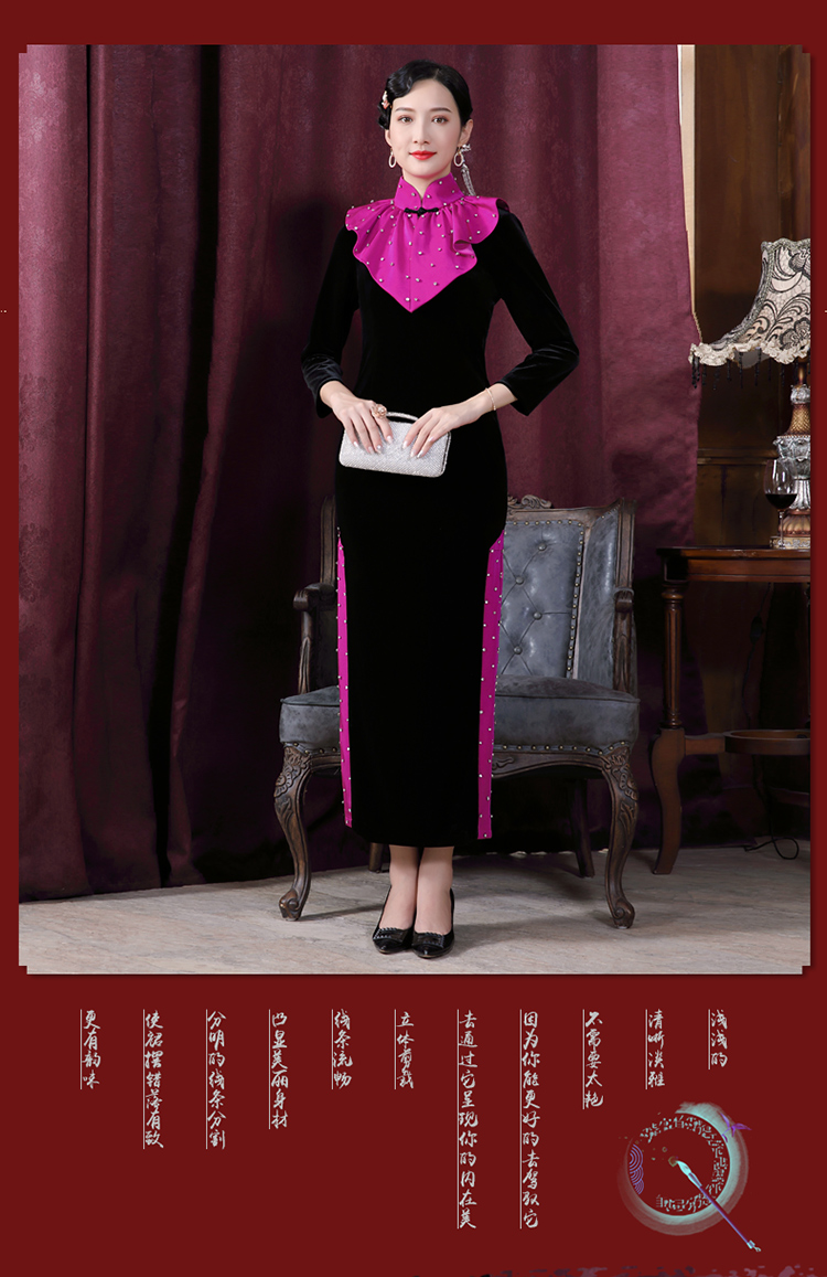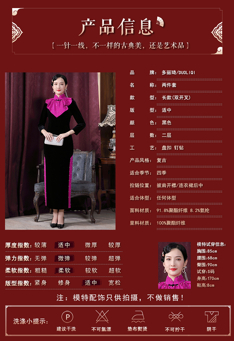 DLQ-A2178秋冬旗袍两件套披肩改良金丝绒旗袍长款高档连衣裙