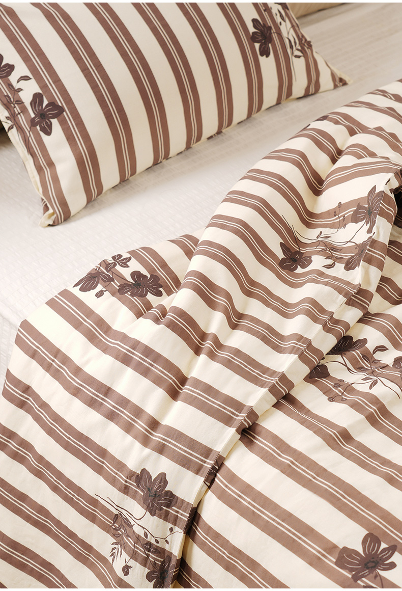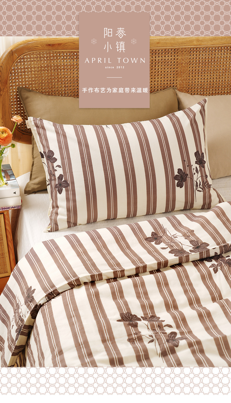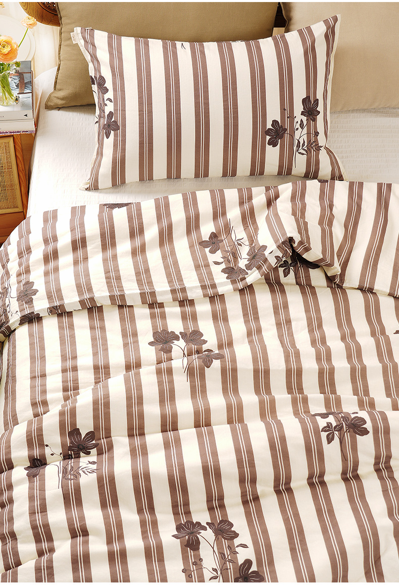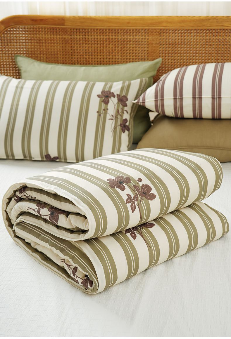 复古条纹系列全套一整套亚麻透气亲肤厚单人一体被子