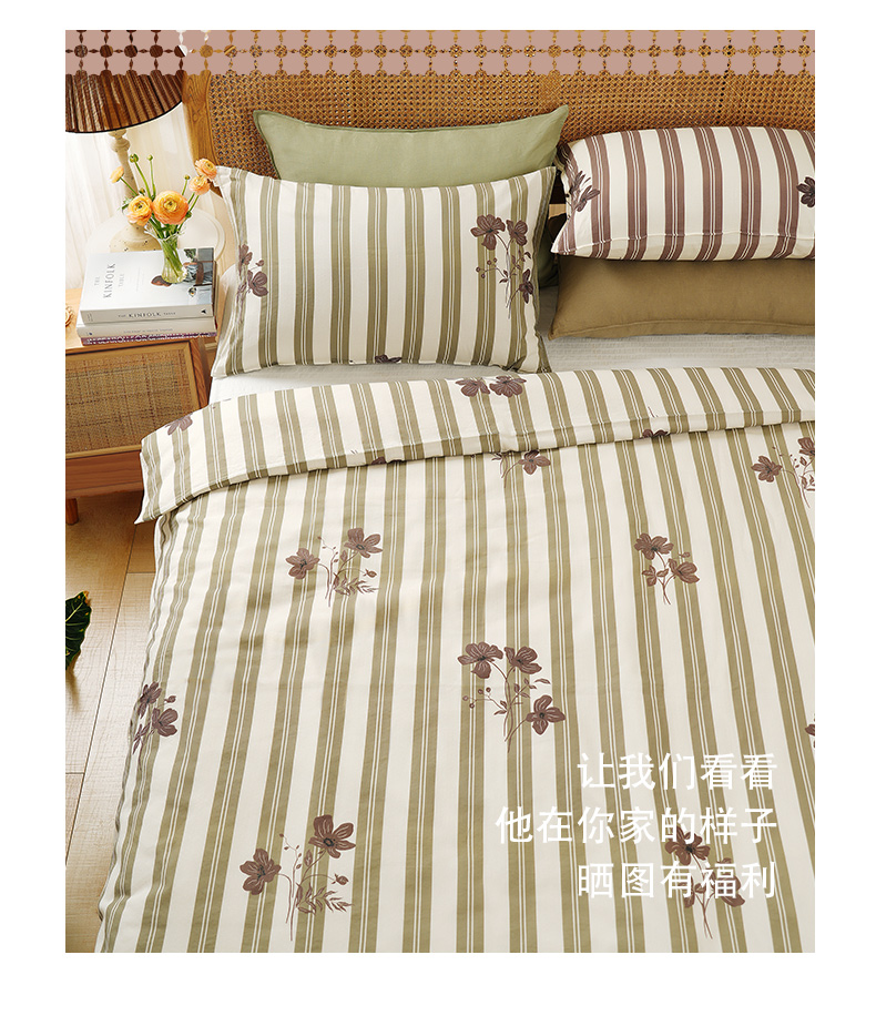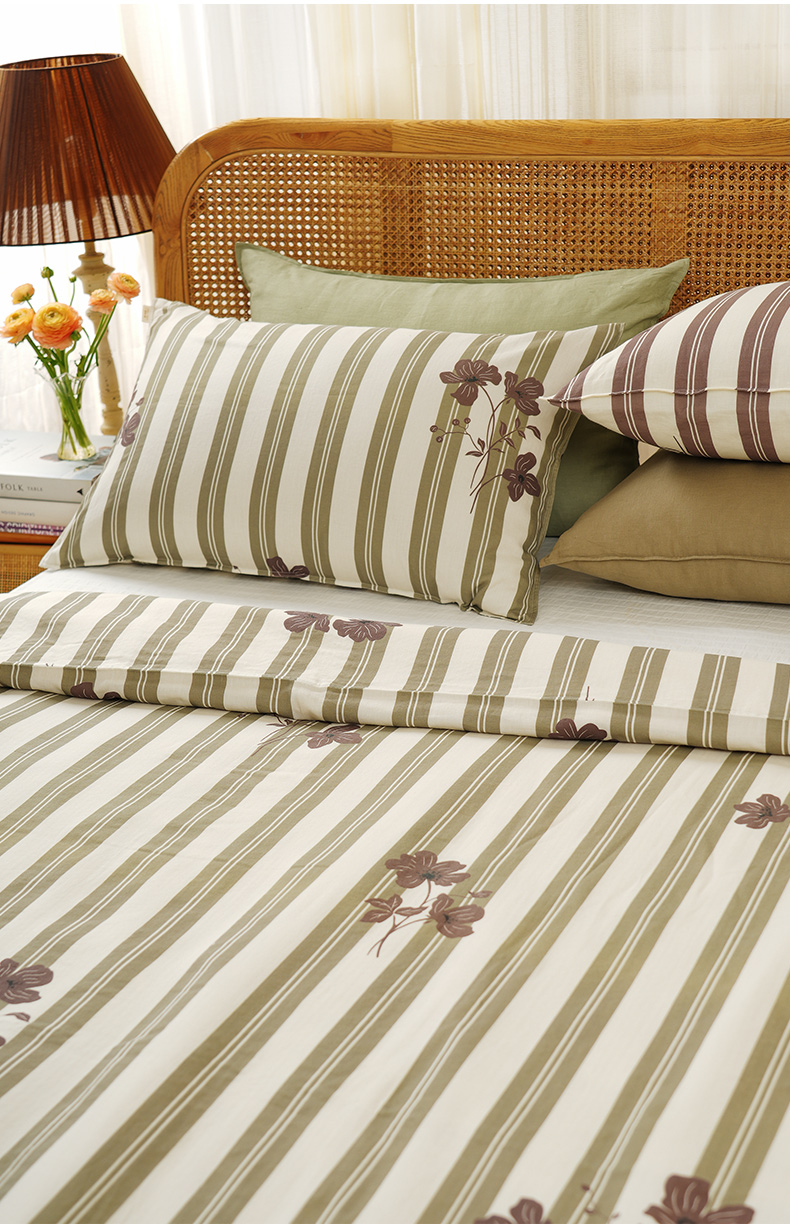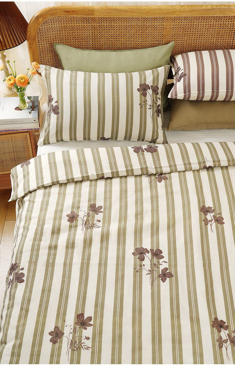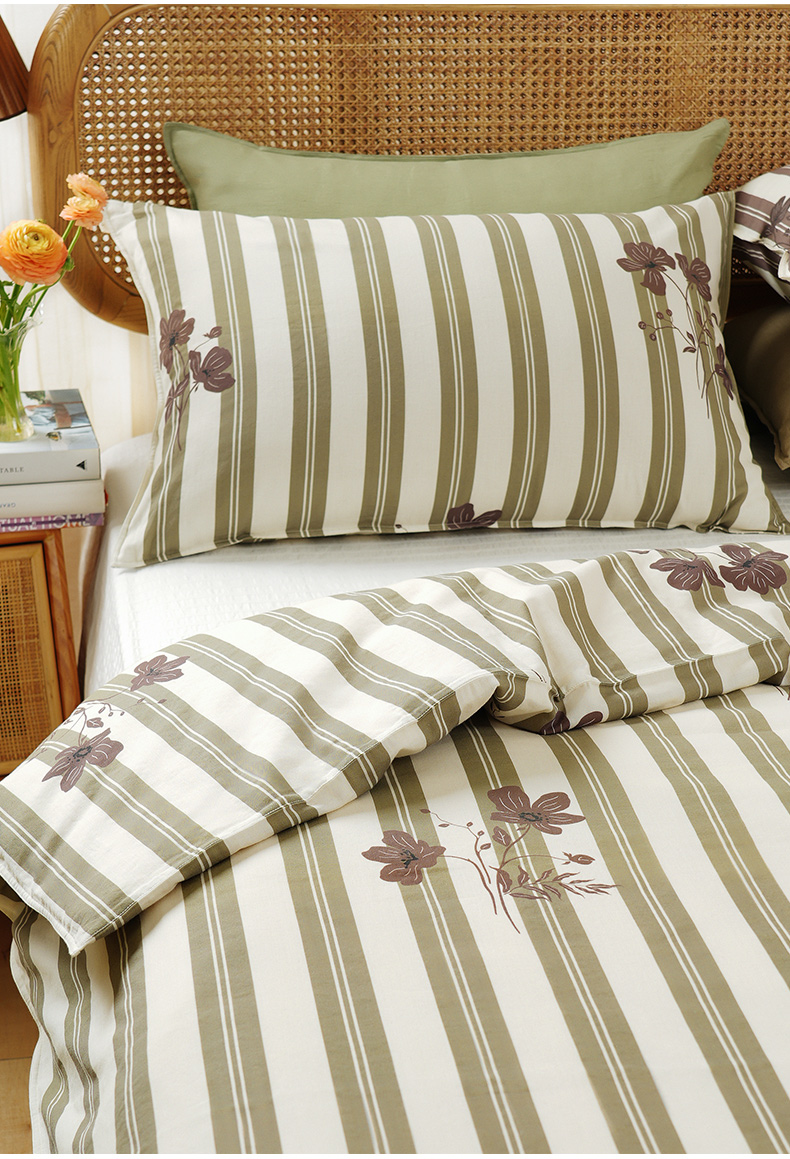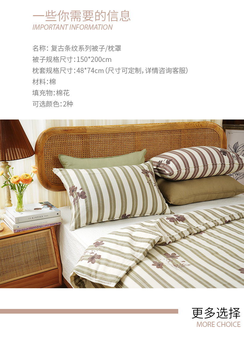 复古条纹系列全套一整套亚麻透气亲肤厚单人一体被子