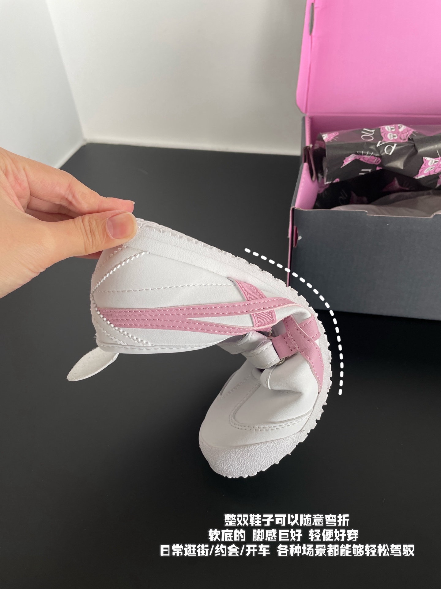 保留了鬼家虎特有的舒适脚感!!鬼冢虎的脚感 相信穿过的姐妹都清楚有多舒服,脚感巨好 软底的 轻便好穿 一点没有束缚感,日常逛街/约会/开车 各种场景都能够轻松驾驭