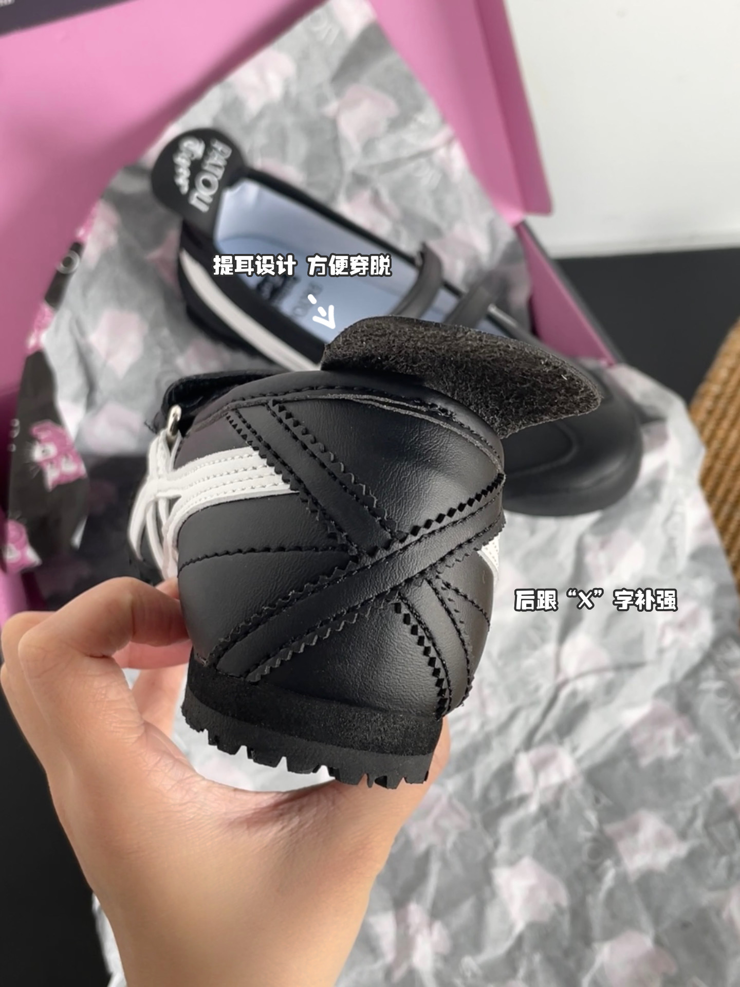 鞋头形状偏圆润 看起来很乖巧!后跟提耳以及“X”字补强