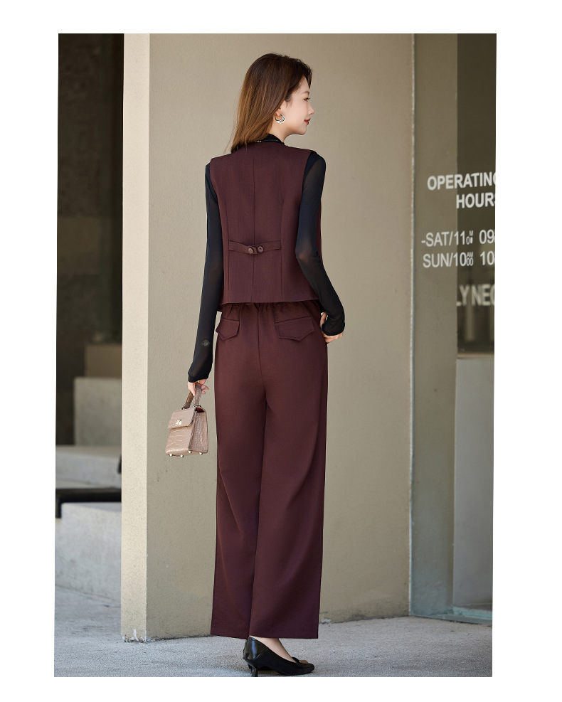 2025年秋装新款气质休闲减龄百搭无袖马甲上衣阔腿裤两件套送丝巾HMQY8262