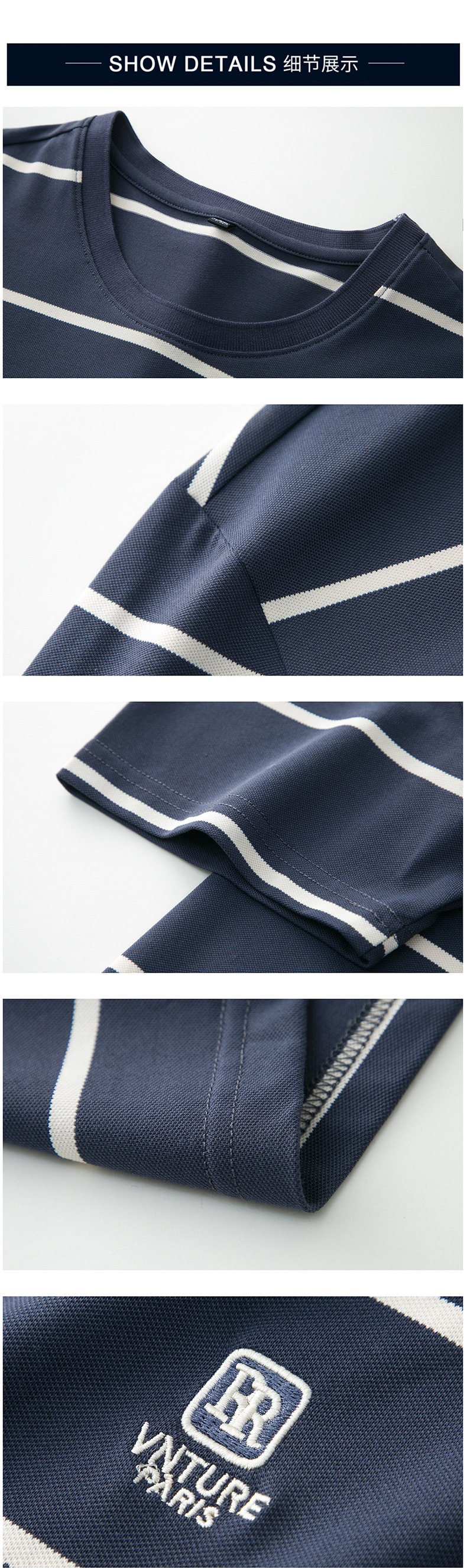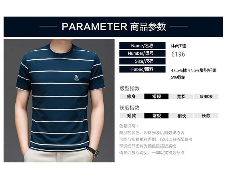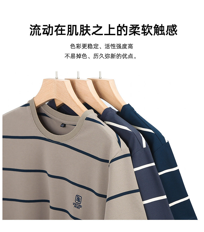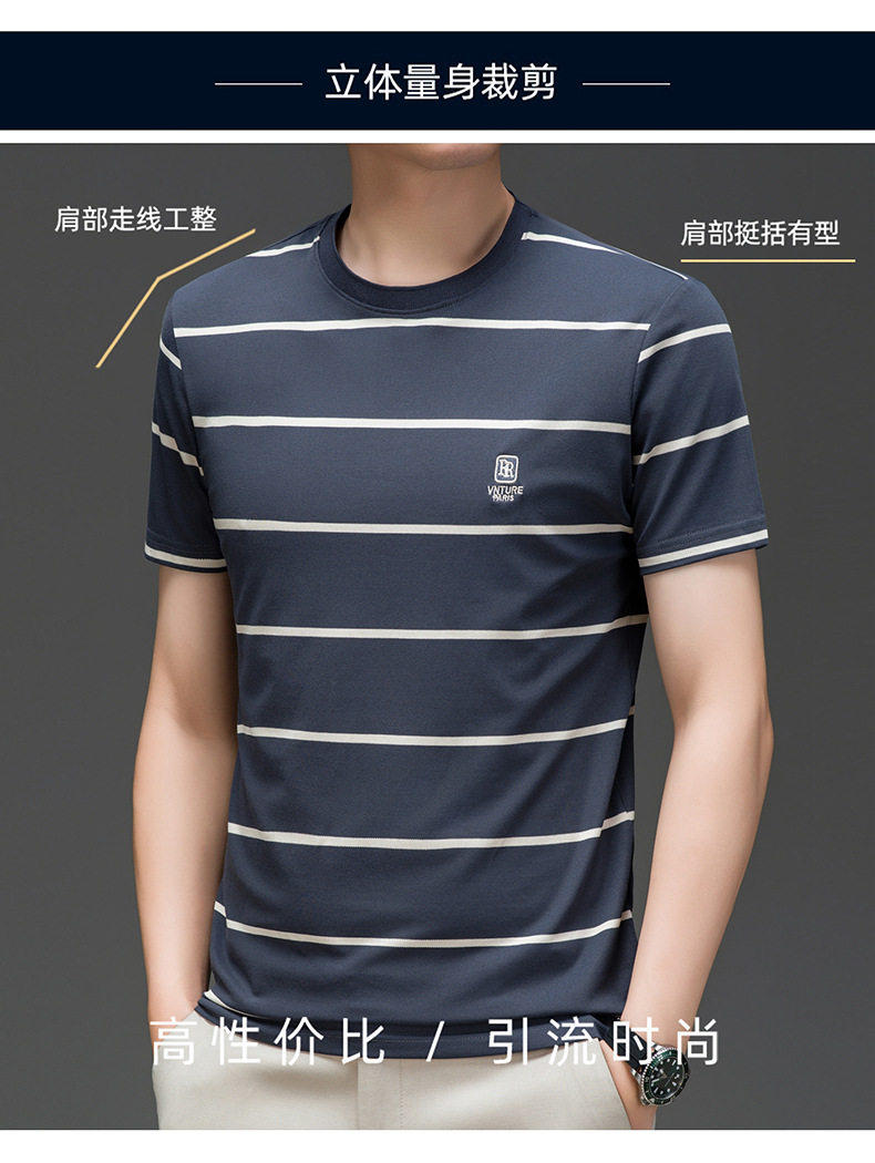 条纹棉T恤男时尚宽松圆领t恤上衣男装夏季新款短袖T恤    PSL-6196* 商品图4