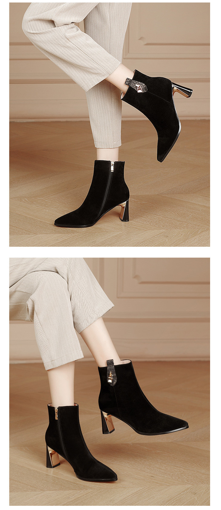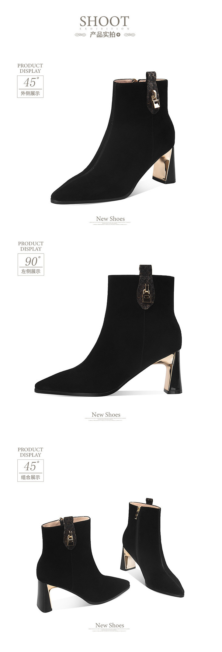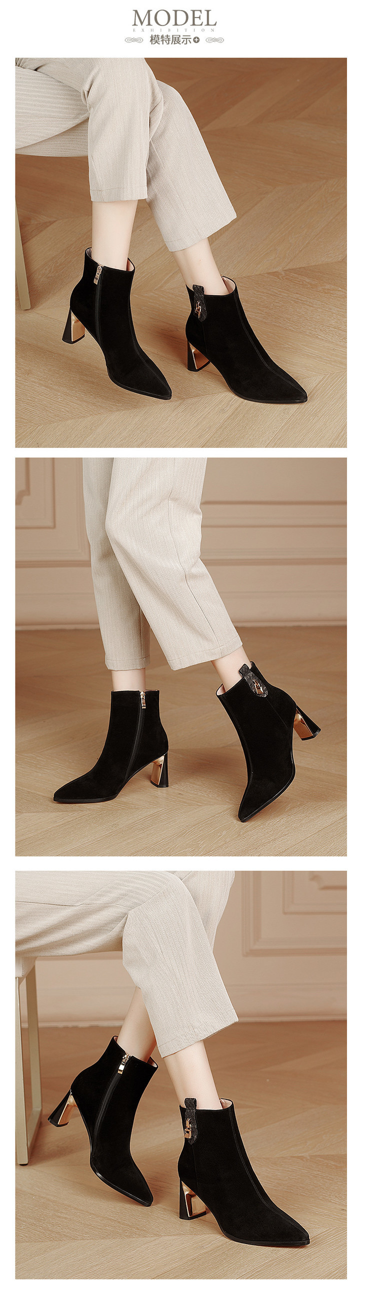 KBY-LD7090新款时尚气质尖头粗高跟短靴