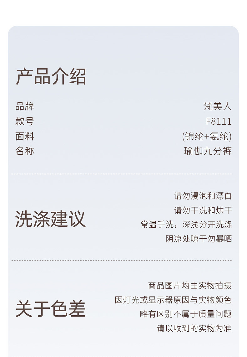 梵美人 F8111 瑜伽九分裤 无尴尬线 无松紧【尼龙66金标莱卡】