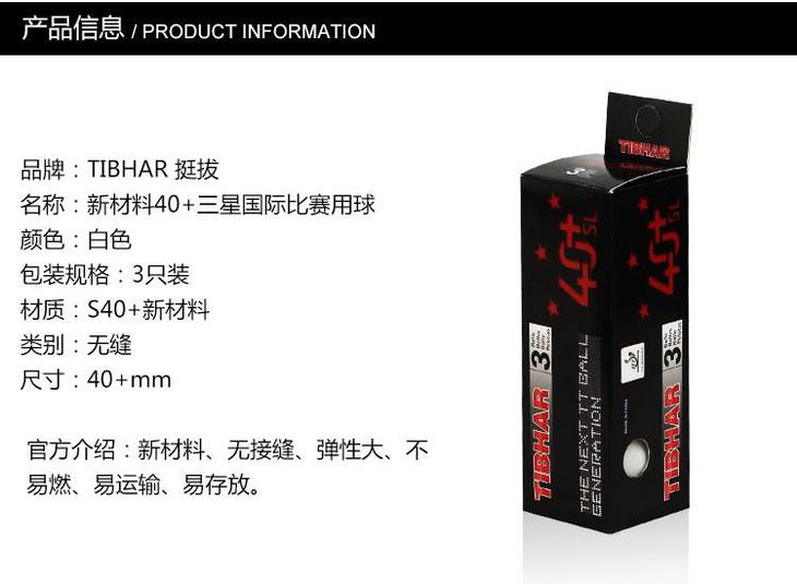 Tibhar挺拔三星乒乓球40+无缝新材料乒乓球
