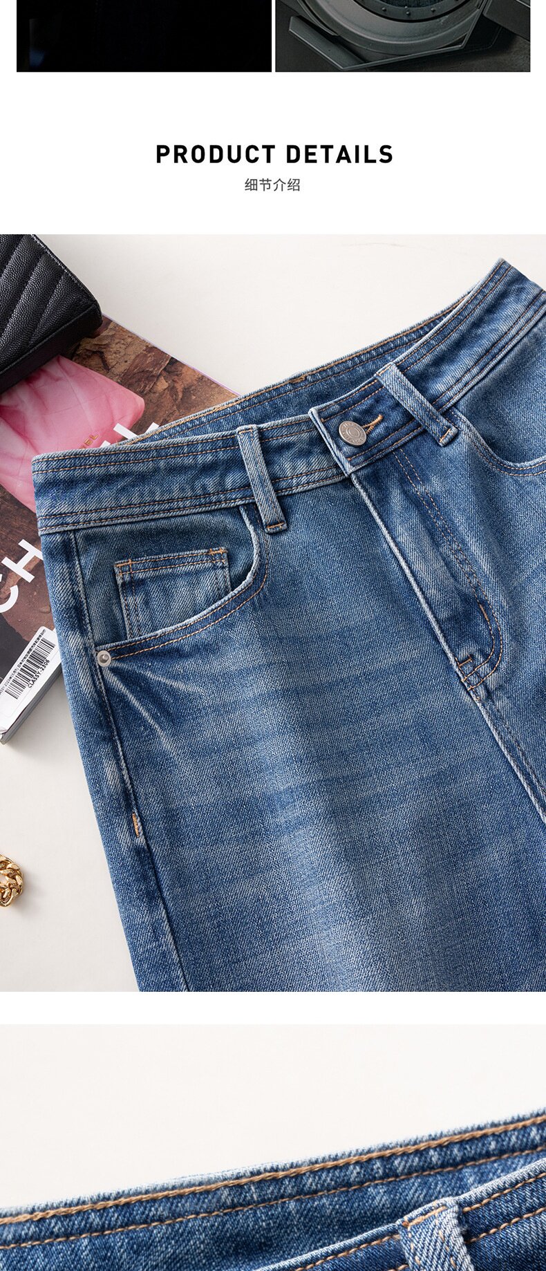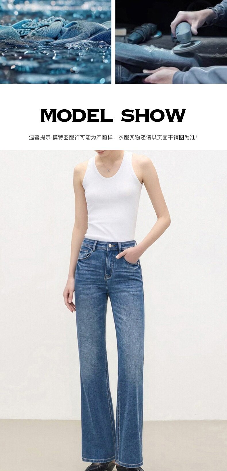 「自」全新升级【铂金会员201/天猫269/差价68】(02843)洛诗琳四面弹超模裤2026春季新款显瘦高腰直筒微喇牛仔裤女