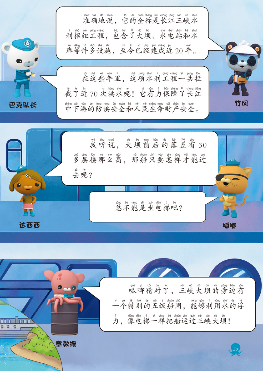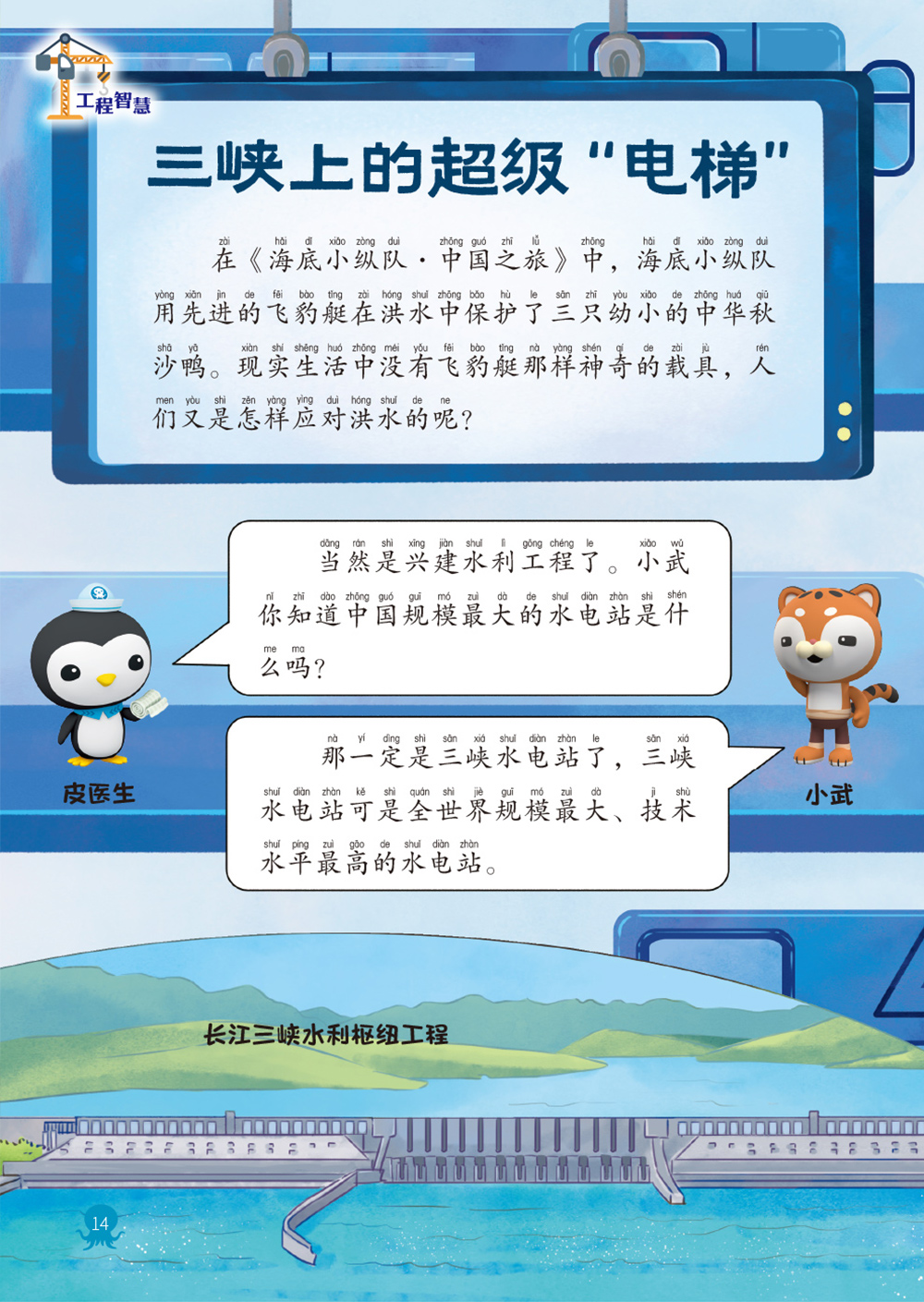 工程智慧 + 超级新科技:倾听海底小纵队成员的对话,认识著名的三峡水利枢纽工程。走近 “嫦娥六号” 和 “中国天眼”,认识中国在航天领域和天文领域的先进科技。