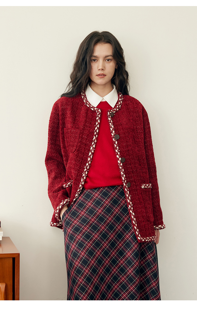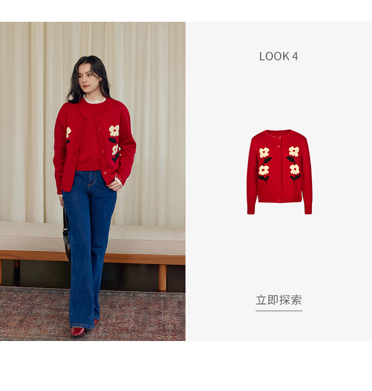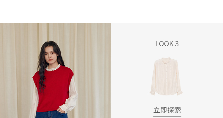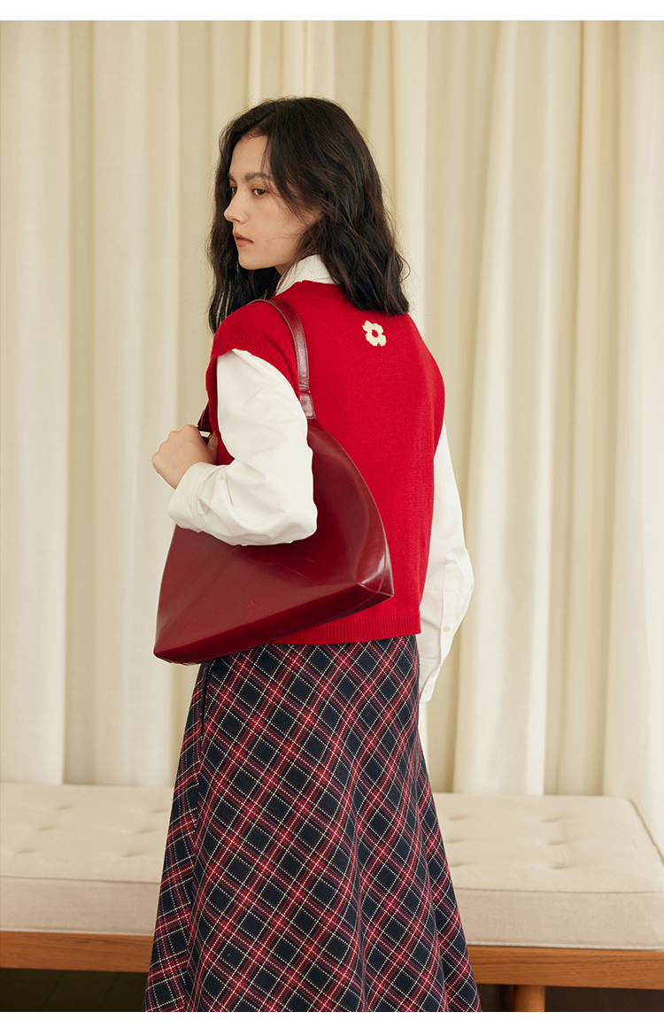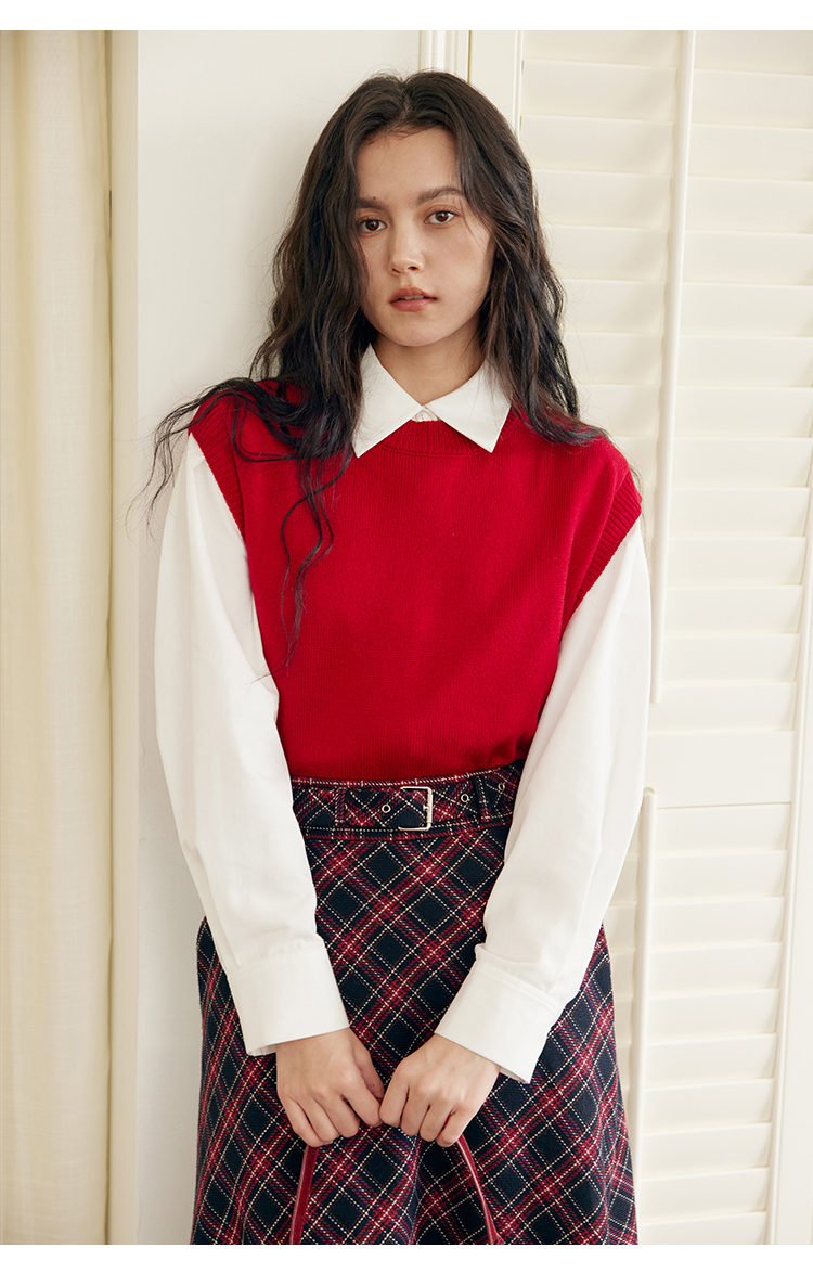 HeyDress羊毛针织马甲女冬季红色复古圆领宽松保暖短款百搭背心