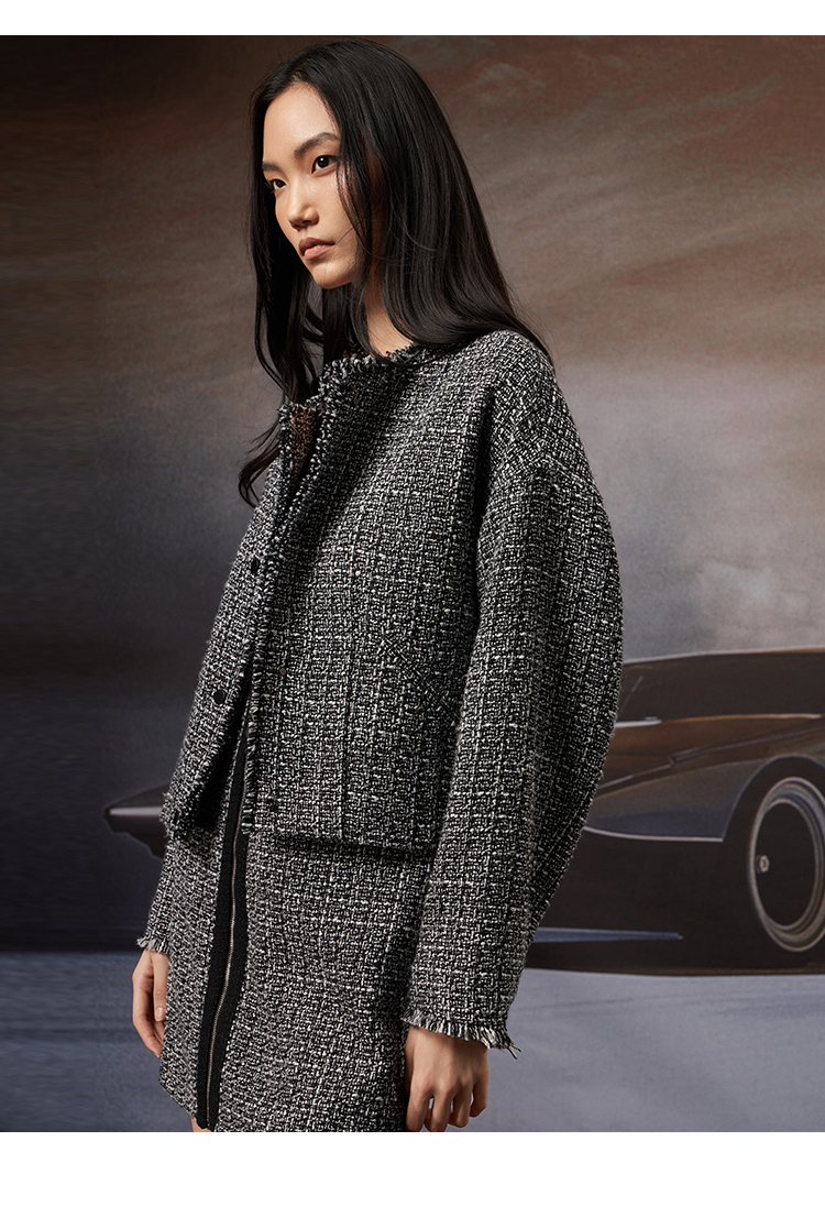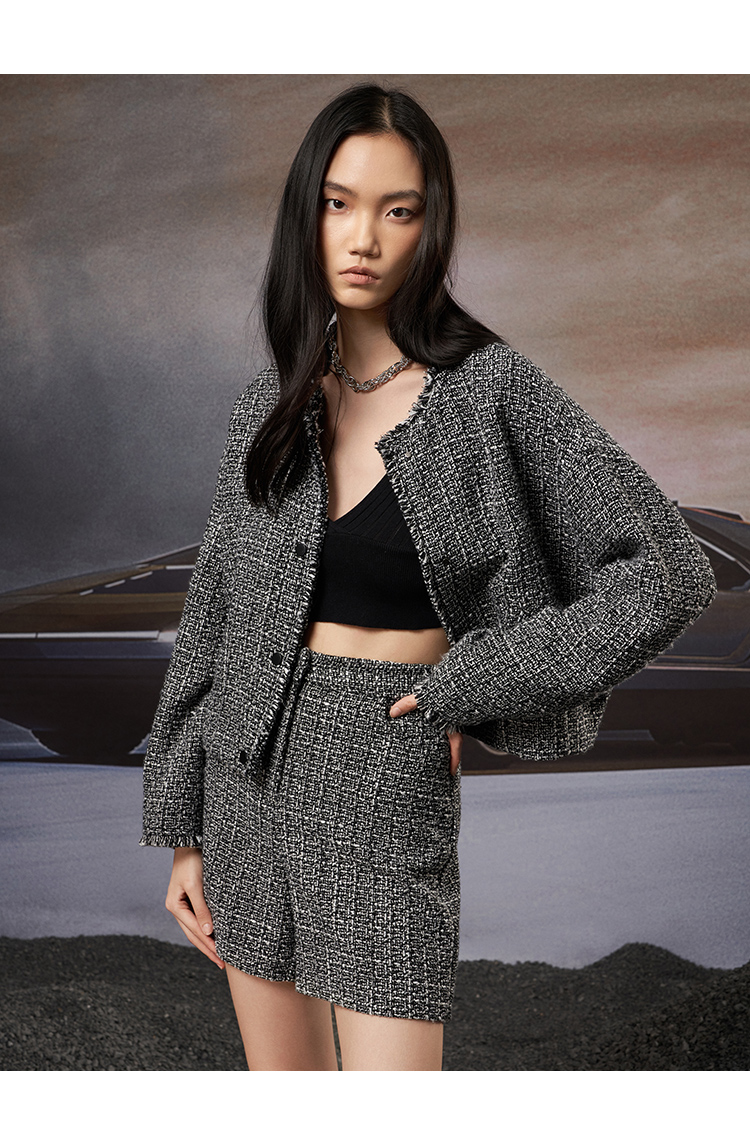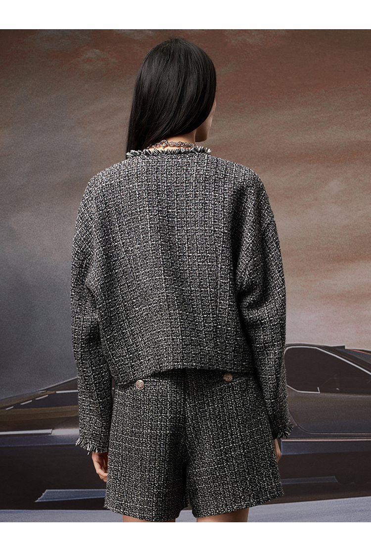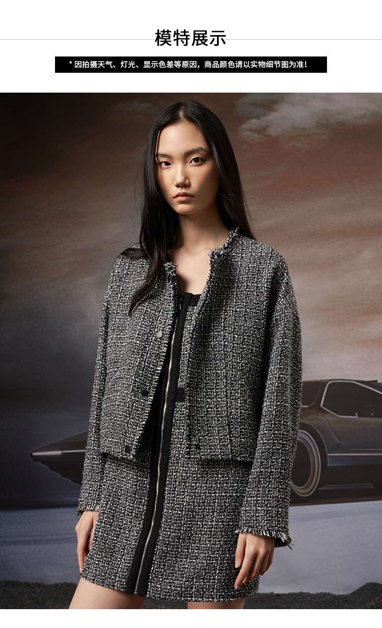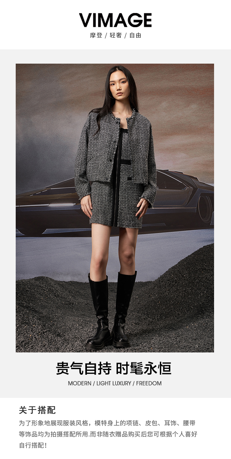 VIMAGE纬漫纪秋季新款粗花呢气质修身显瘦时尚格子短外套V1803417