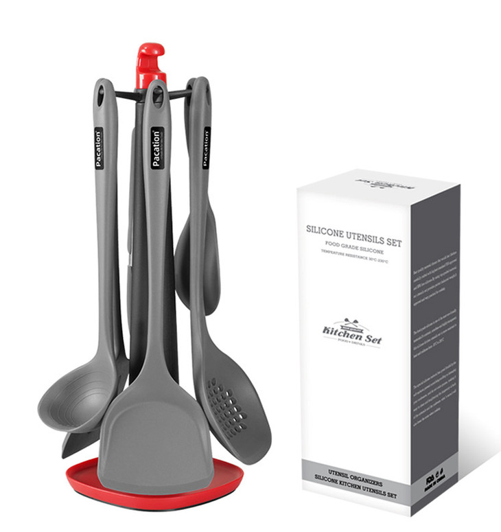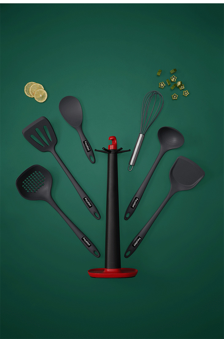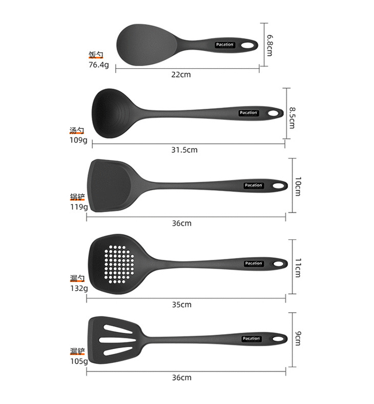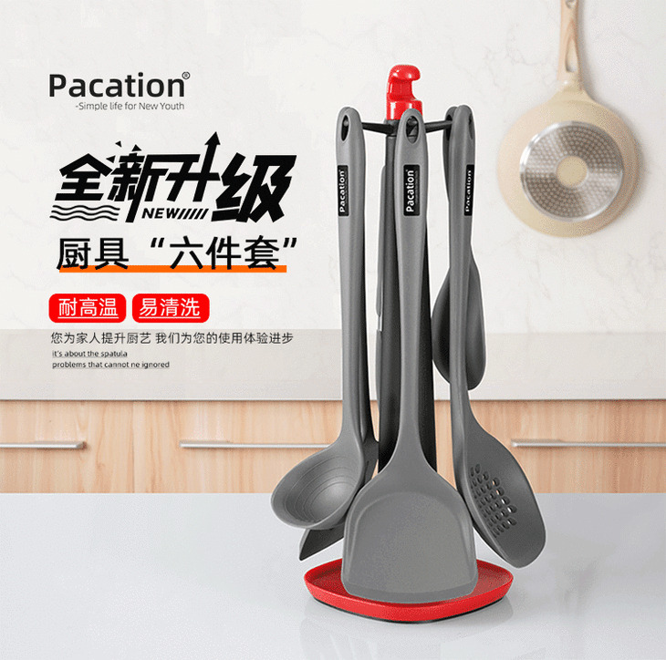 星罗6件套+送支架更大!新款家庭厨房硅胶锅铲 硅胶铲炒勺煎鱼汤勺火锅大漏勺厨具套装