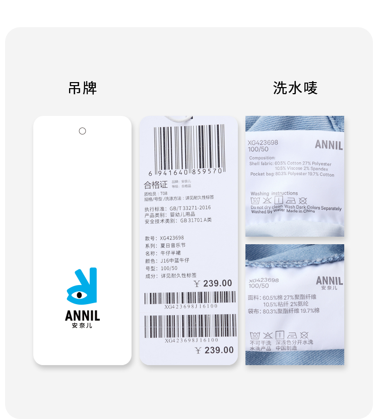 女童A摆牛仔裙夏季新款安奈儿童装实体店同款XG423698