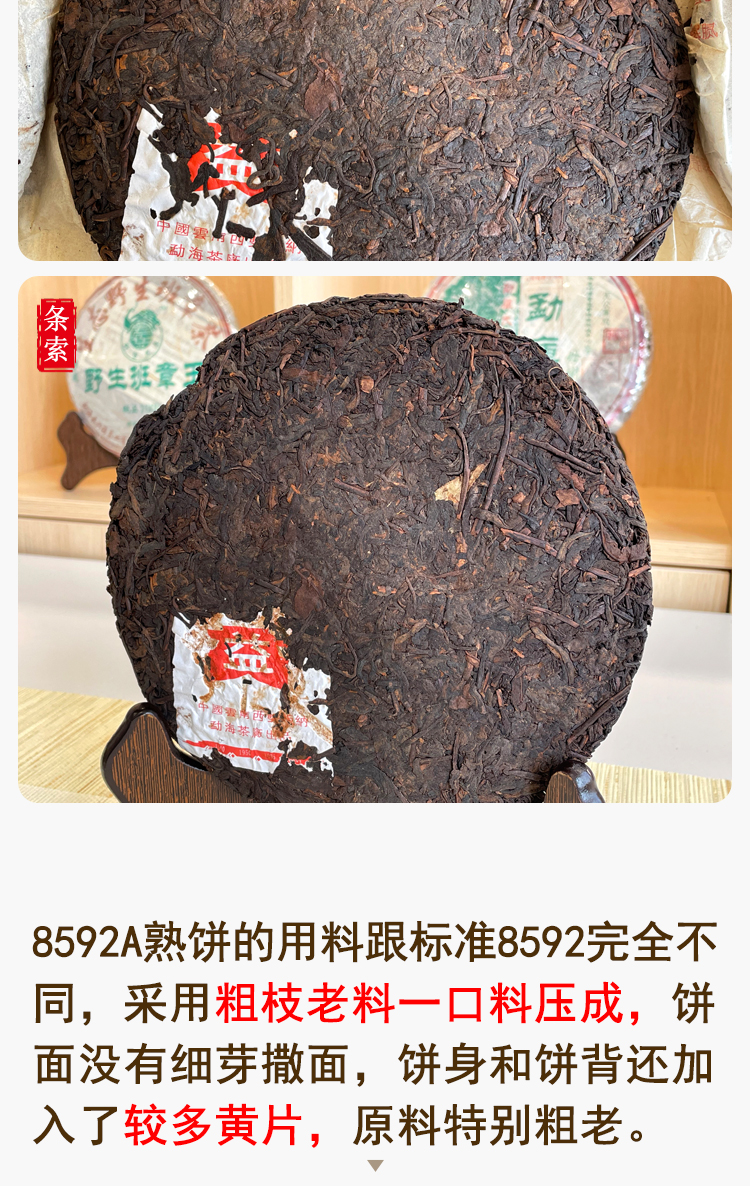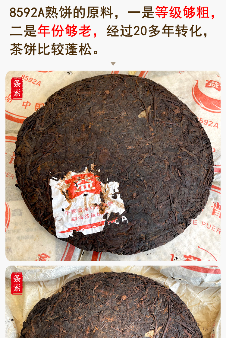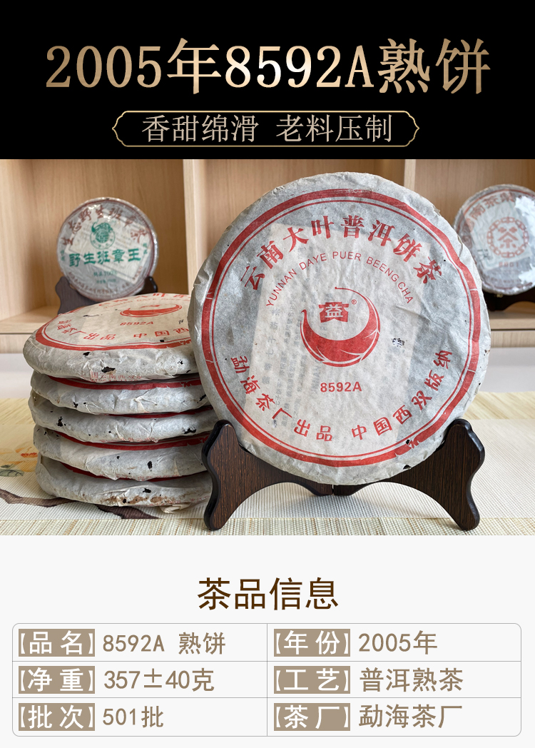 【强烈推荐】2005年大益501批次8592A普洱老熟茶 陈年粗老原料加黄片压制成饼 汤感甜润滑药香参香明显 干仓真品单片价 建议用大壶冲泡投茶重一点汤感会更好