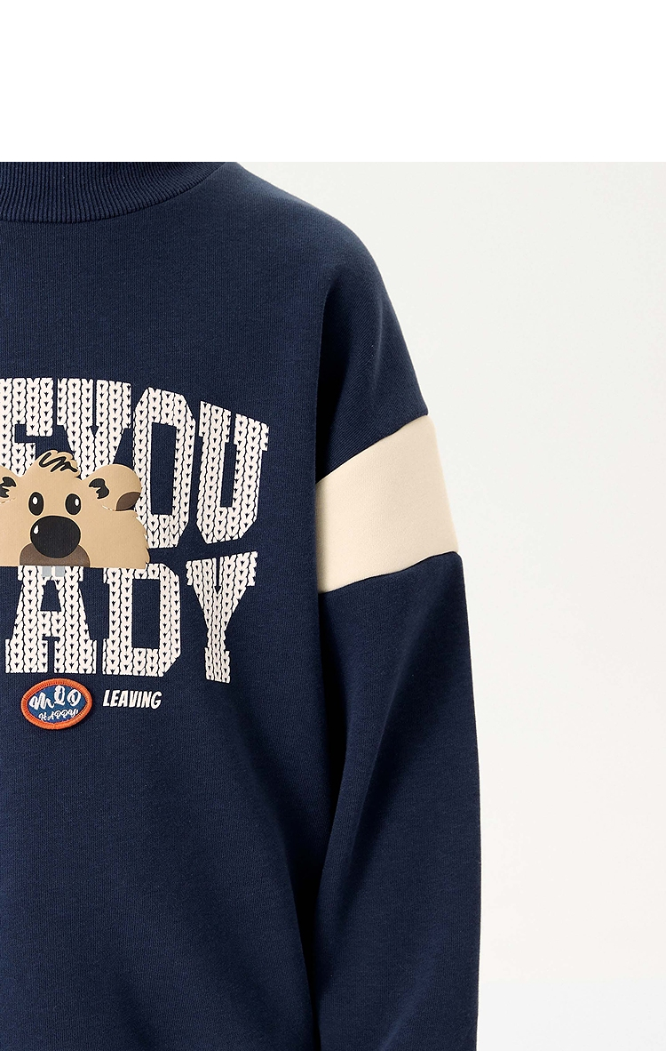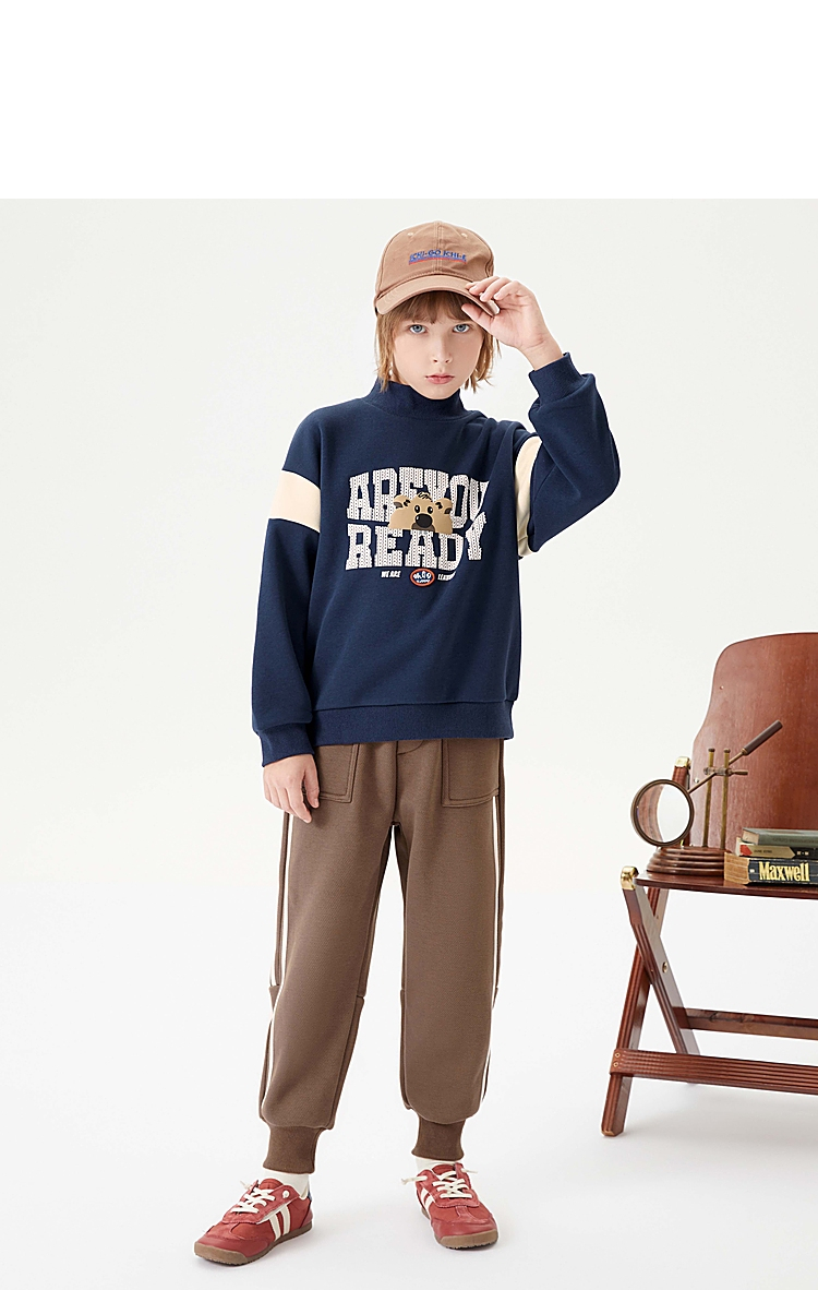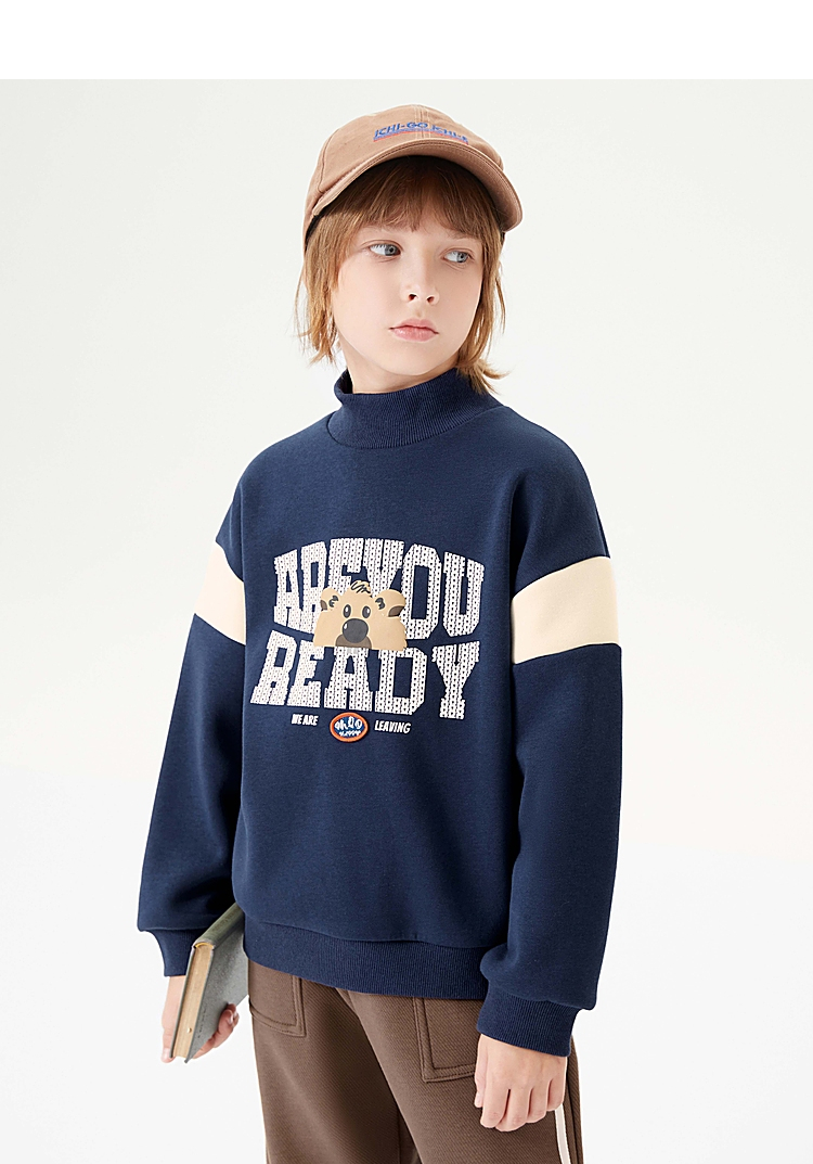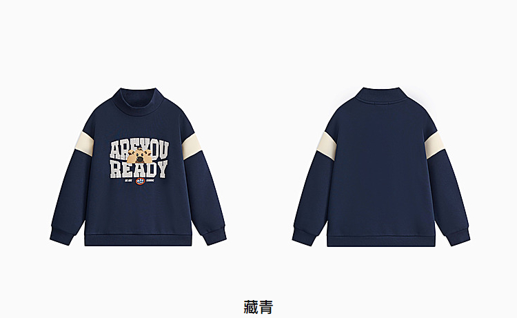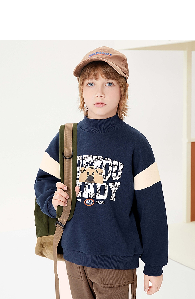 【MQD】童装男大童冬新款学院风撞色拼接加绒保暖半高领卫衣
