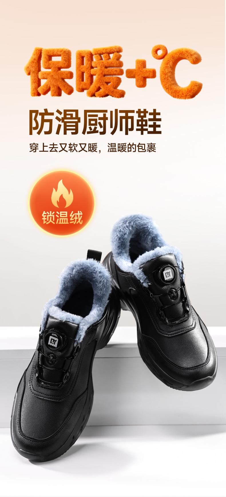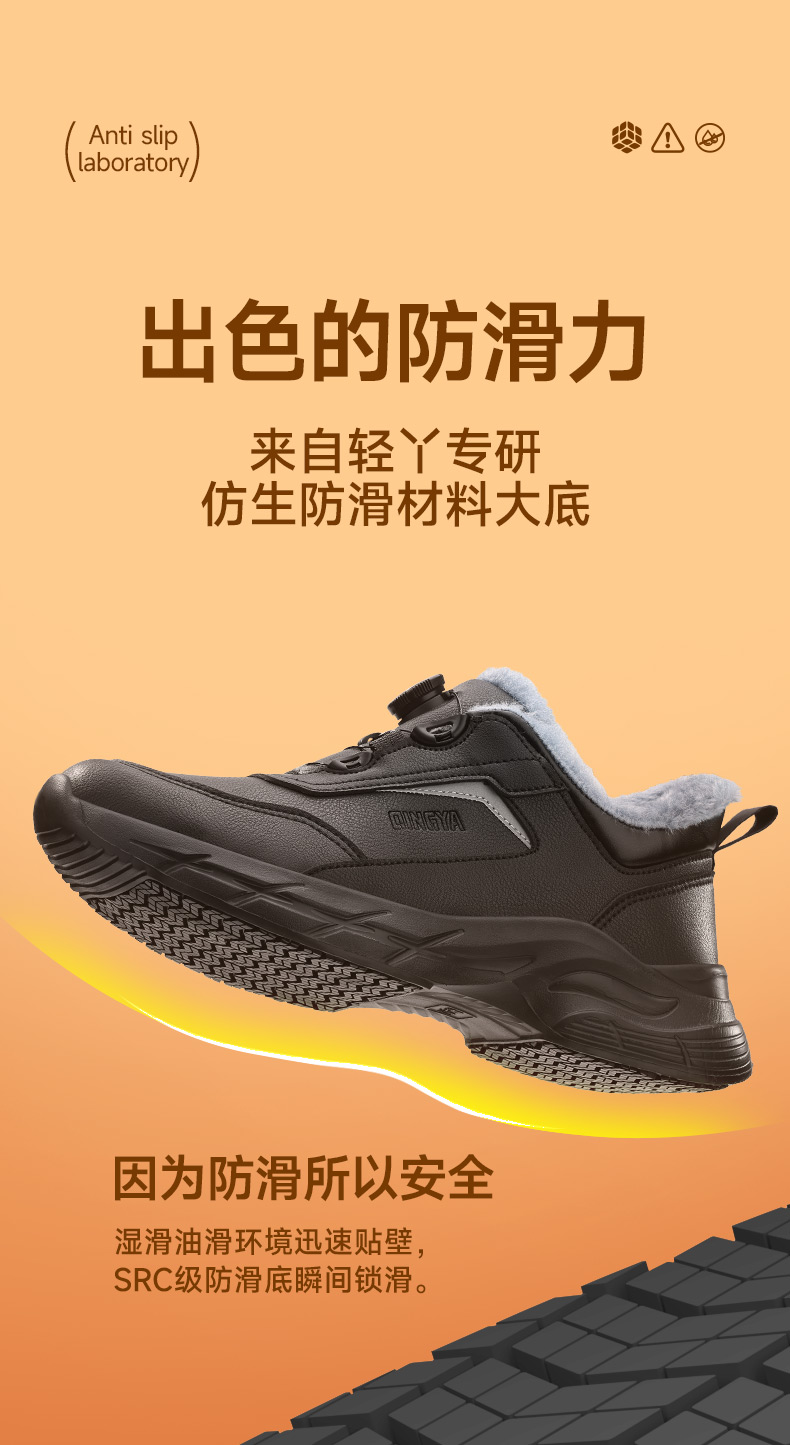 轻丫冬季新款厨师防滑鞋防水防滑SRC低帮保暖棉毛无包头无中底