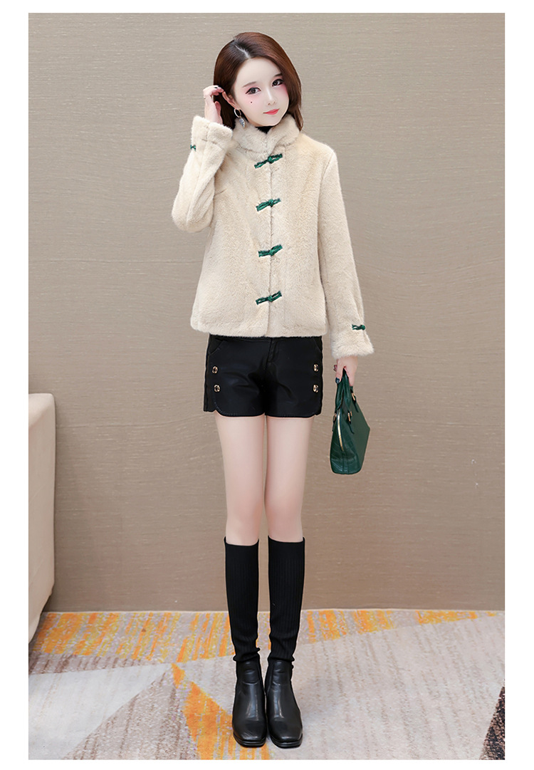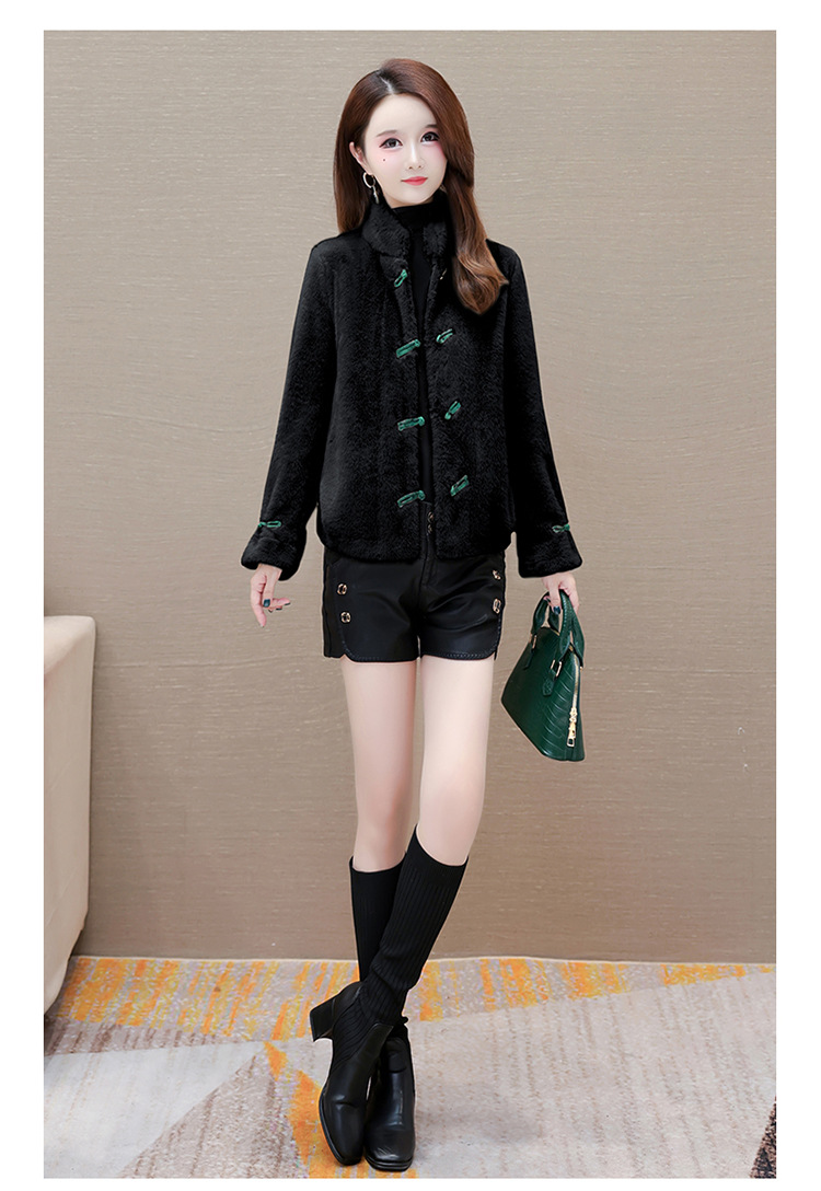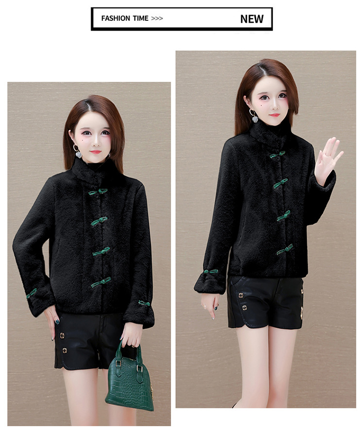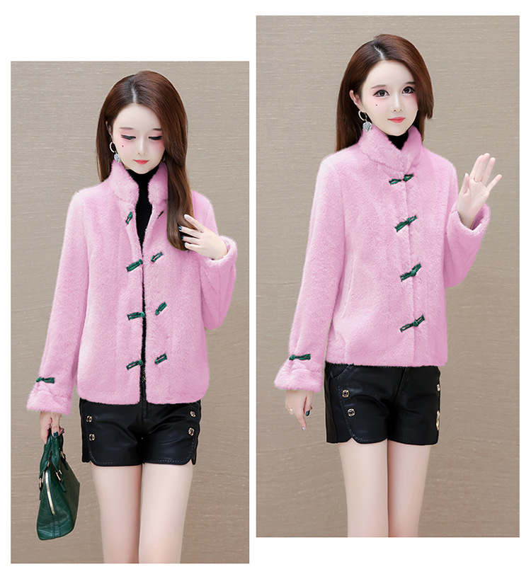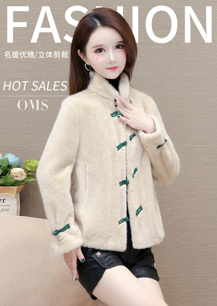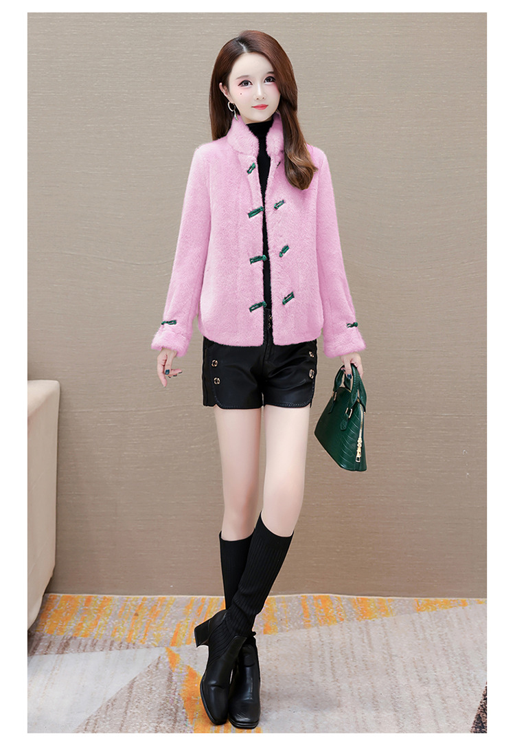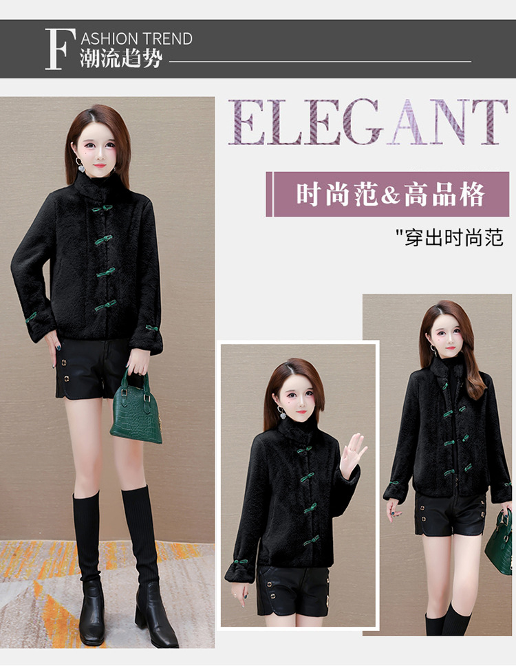 冬款短款时尚保暖仿貂绒外套立领长袖中式盘扣洋气毛绒上衣QYM-OMS-ZXB3360-L