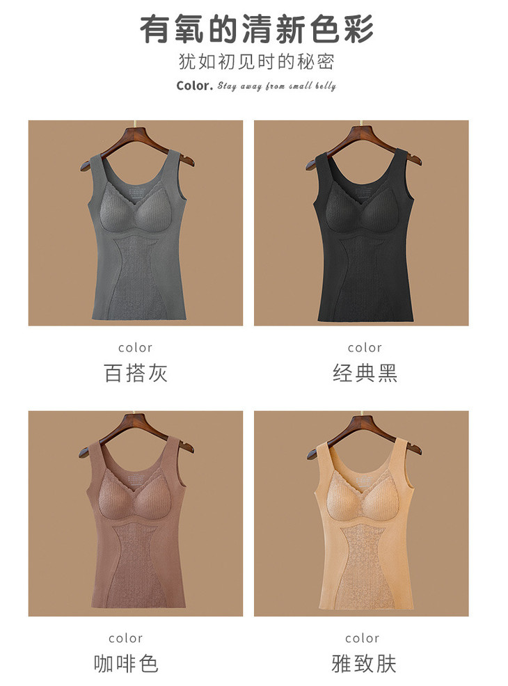 美宅恒温保暖内衣背心,女士带胸垫免穿文胸抗菌发热无痕内穿加厚LJX-080