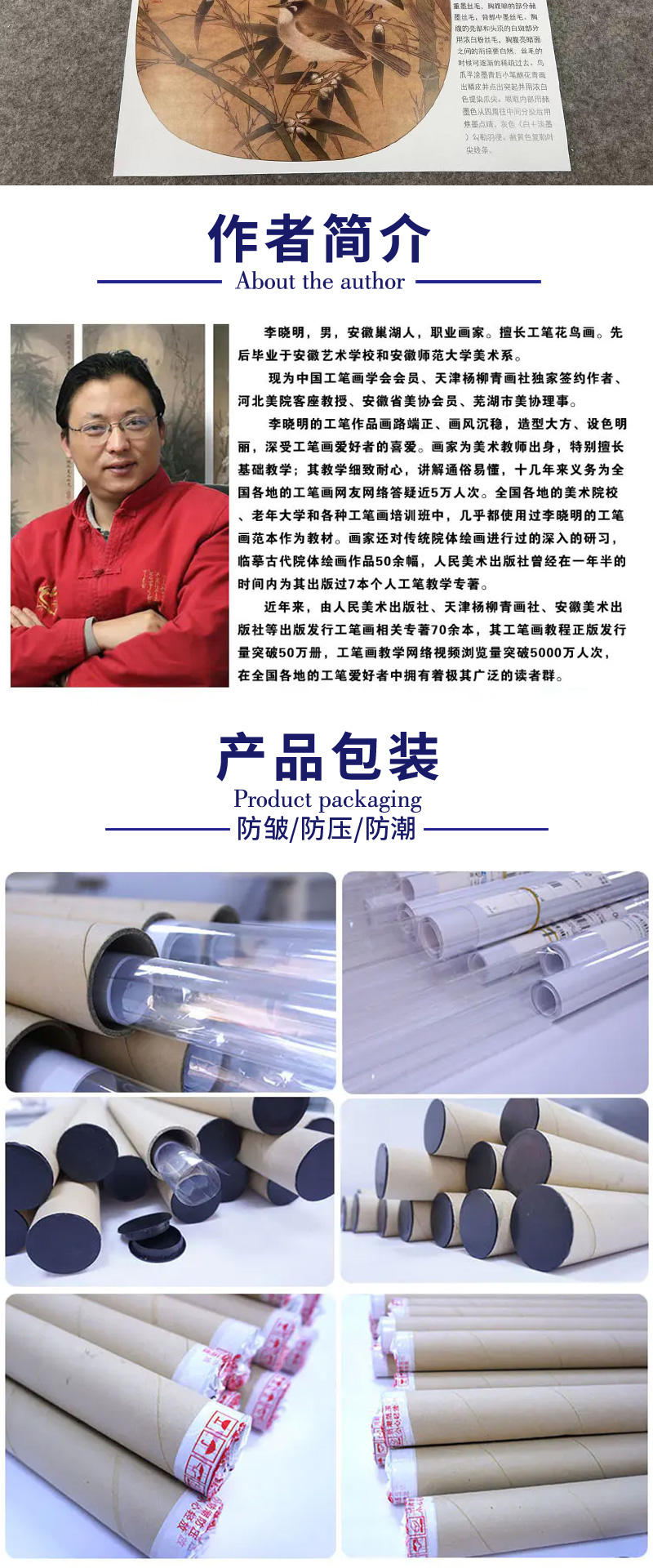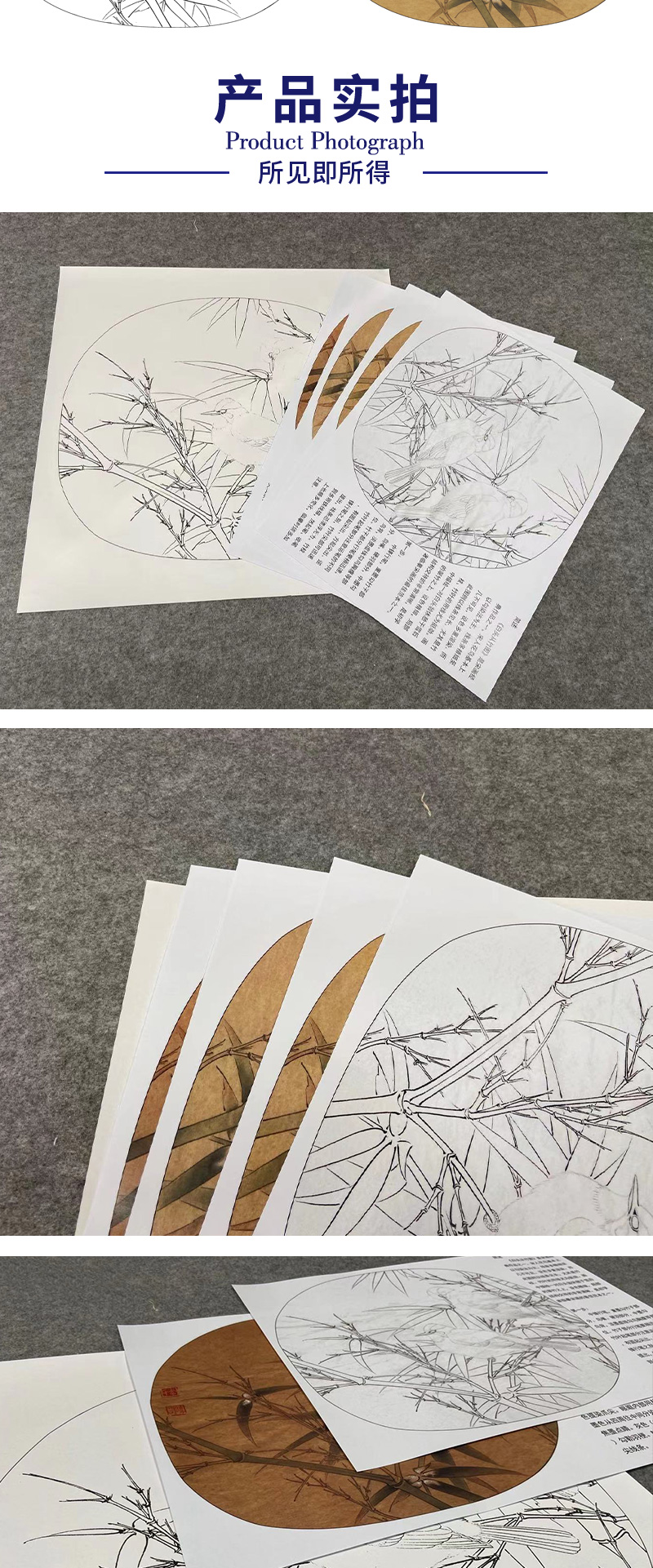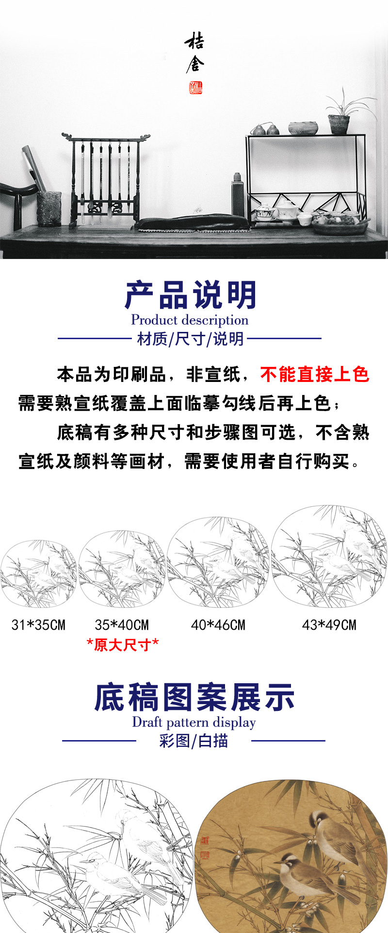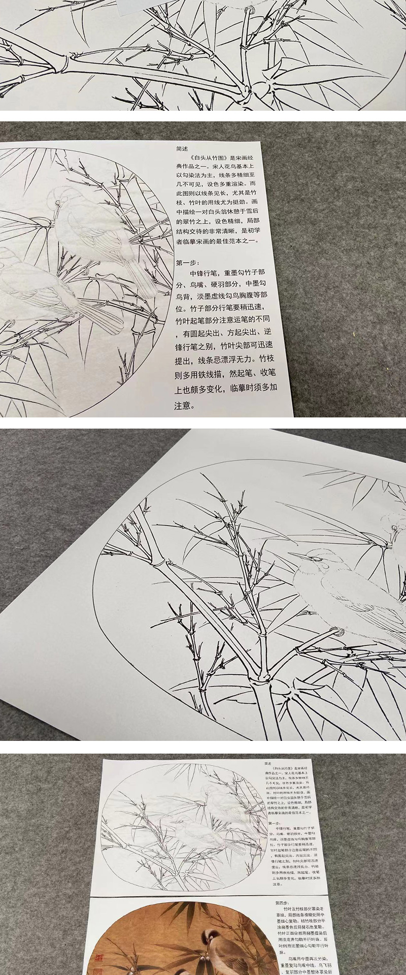 【有步骤、大彩图】李晓明工笔画白描底稿圆形小品《临宋白头丛竹图》白头翁竹子初学者临摹花鸟线稿KC26