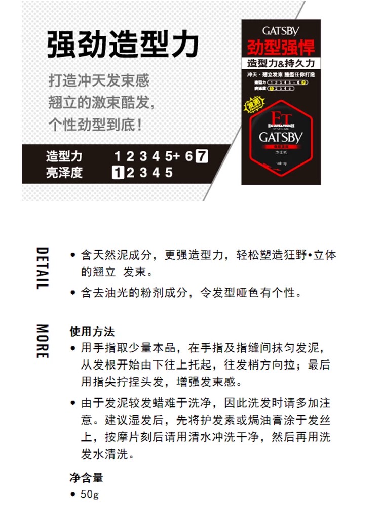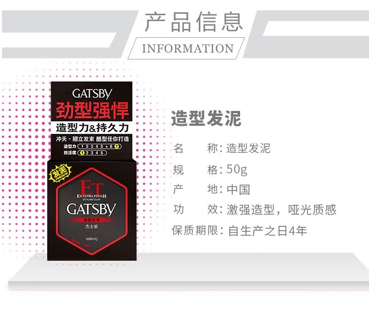 【门店直发】杰士派男士造型头发自然蓬松持久强硬哑光发泥50g
