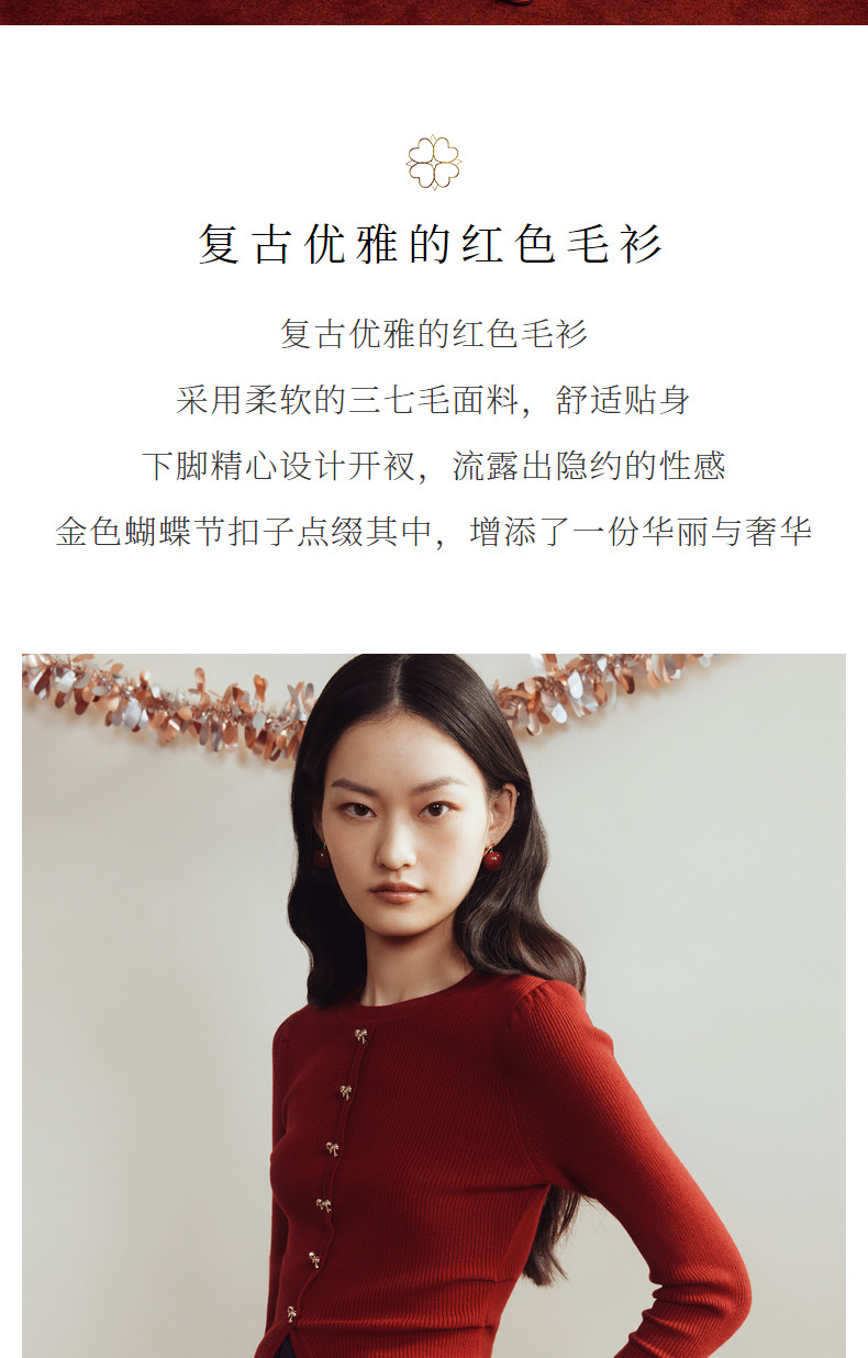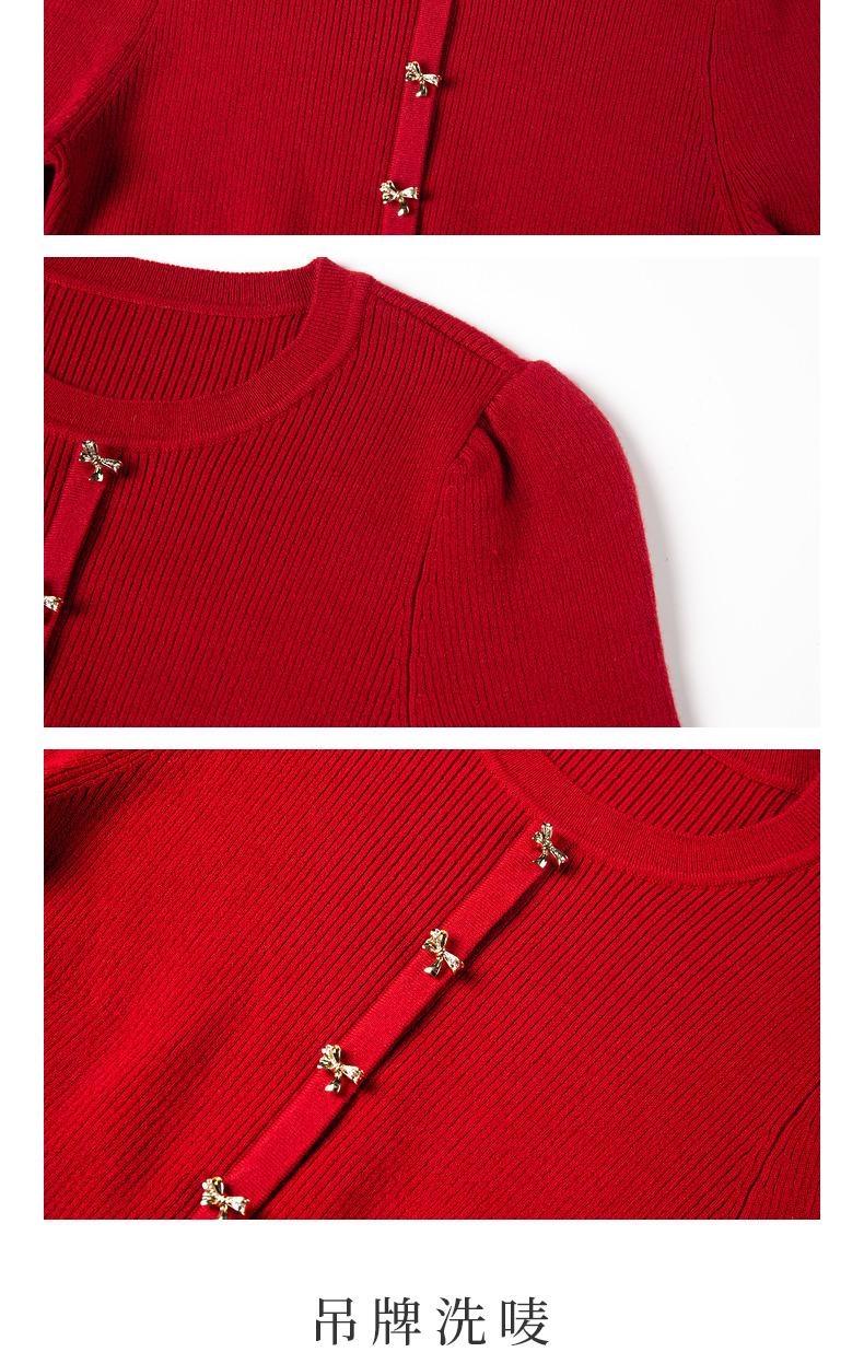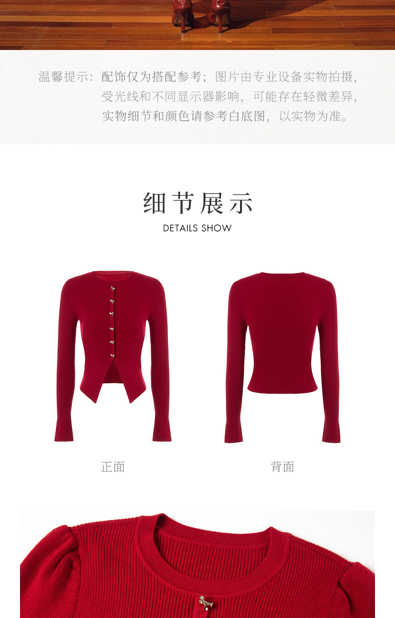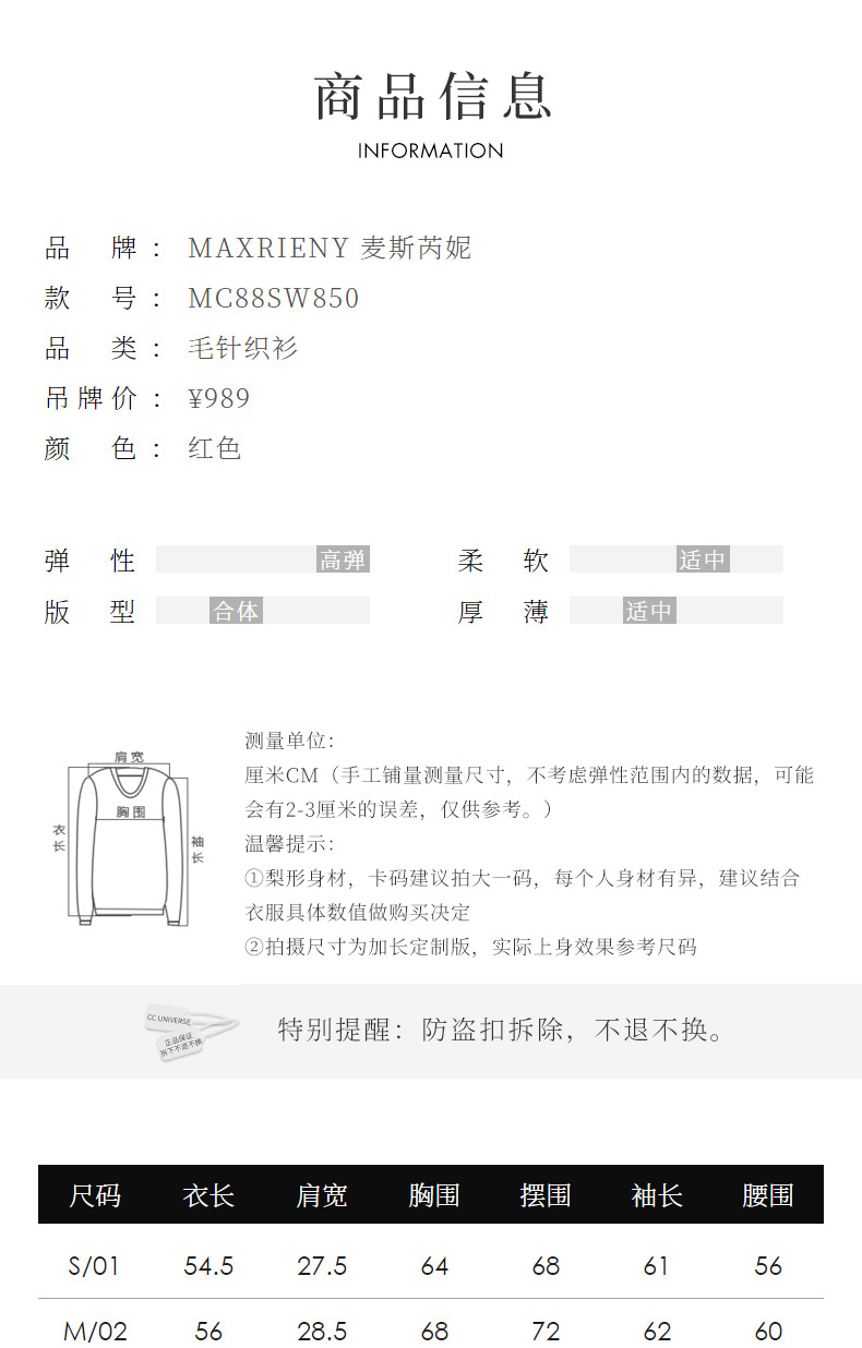 MAXRIENY*复古红收腰针织衫冬款修身上衣战衣(货号:MC88SW850)