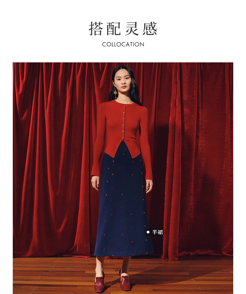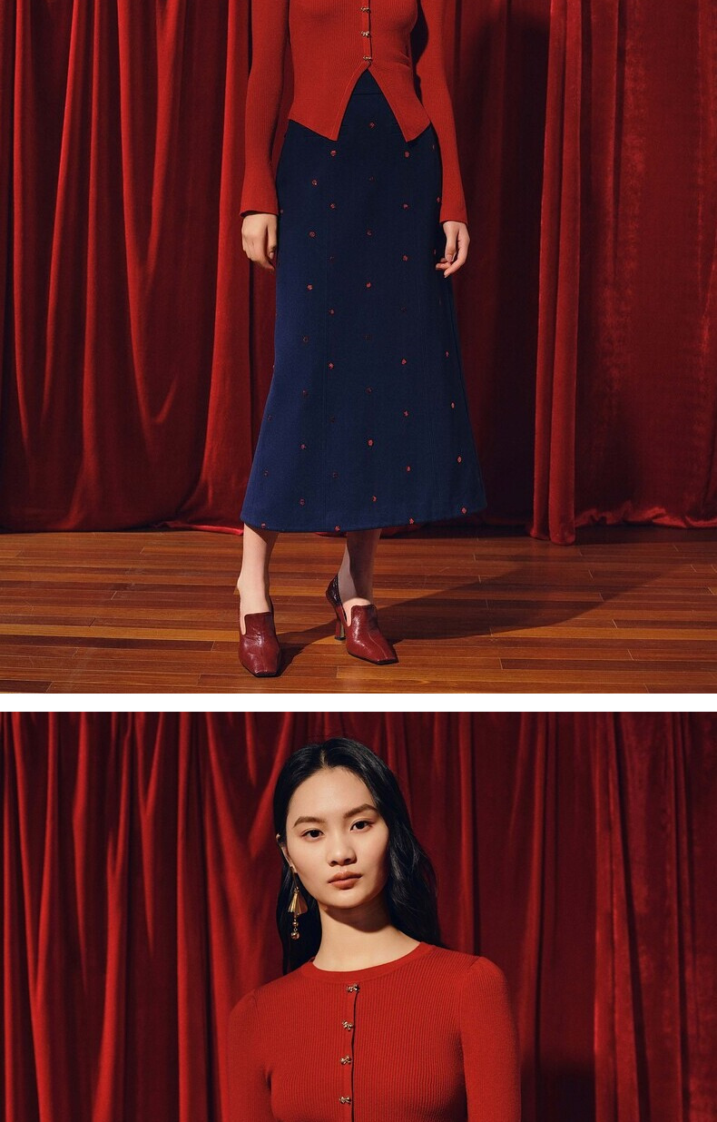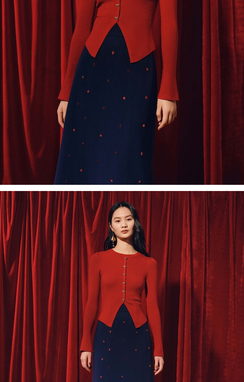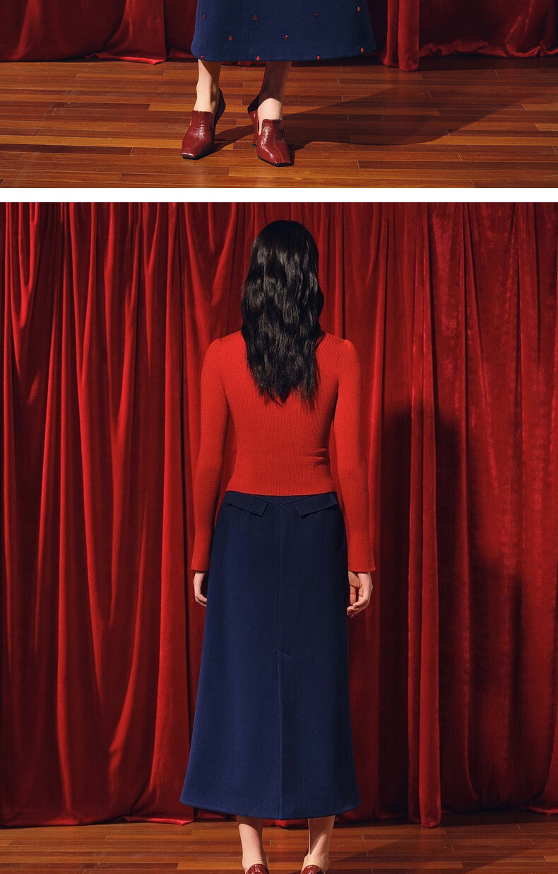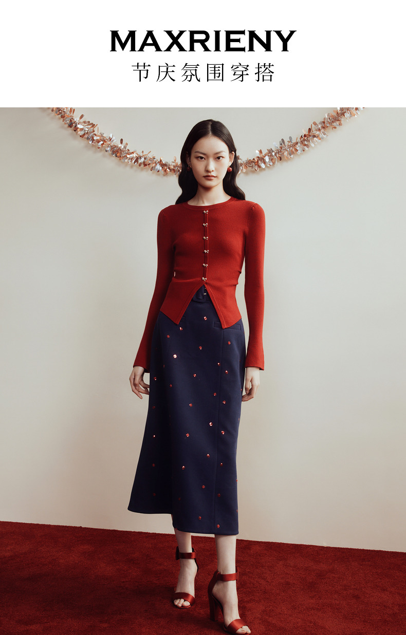 MAXRIENY*复古红收腰针织衫冬款修身上衣战衣(货号:MC88SW850)