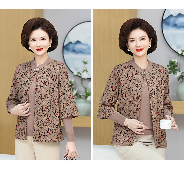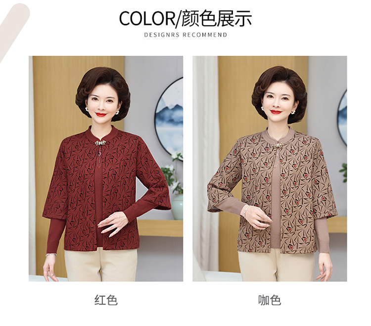 W050-3113真两件套-90-168妈妈春秋装格子毛衣外套薄款针织开衫中老年人女大码打底衫两件套
