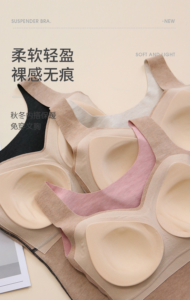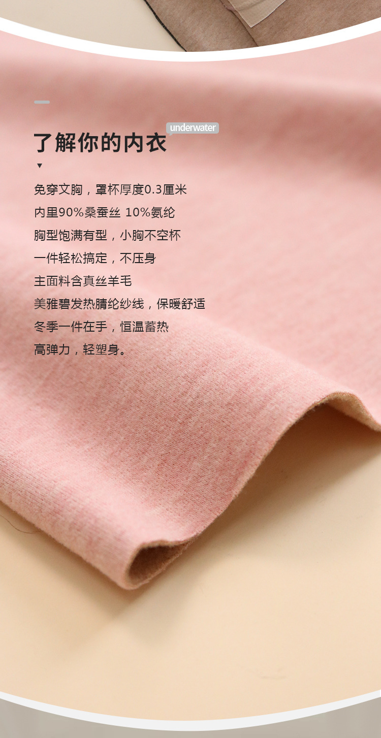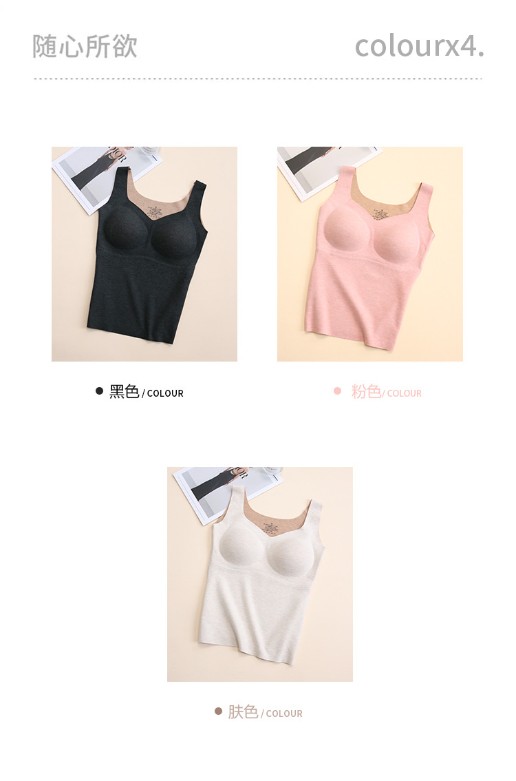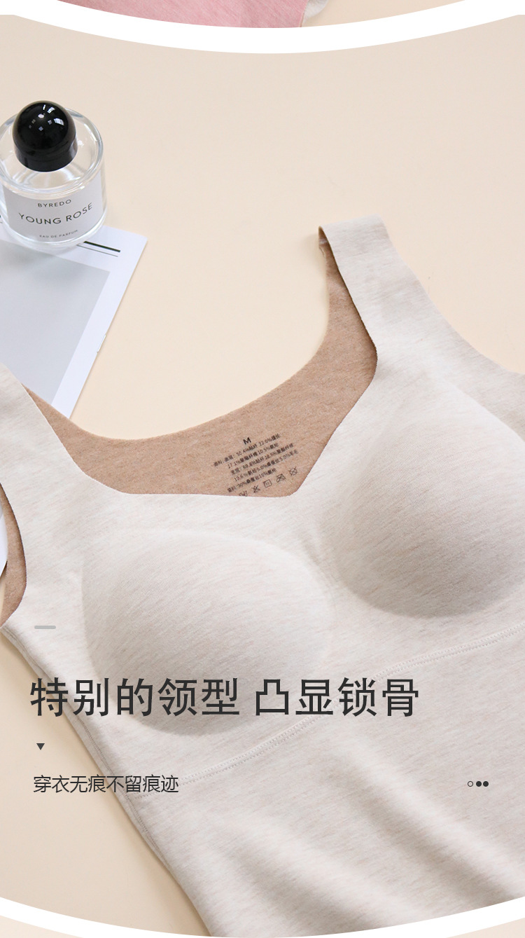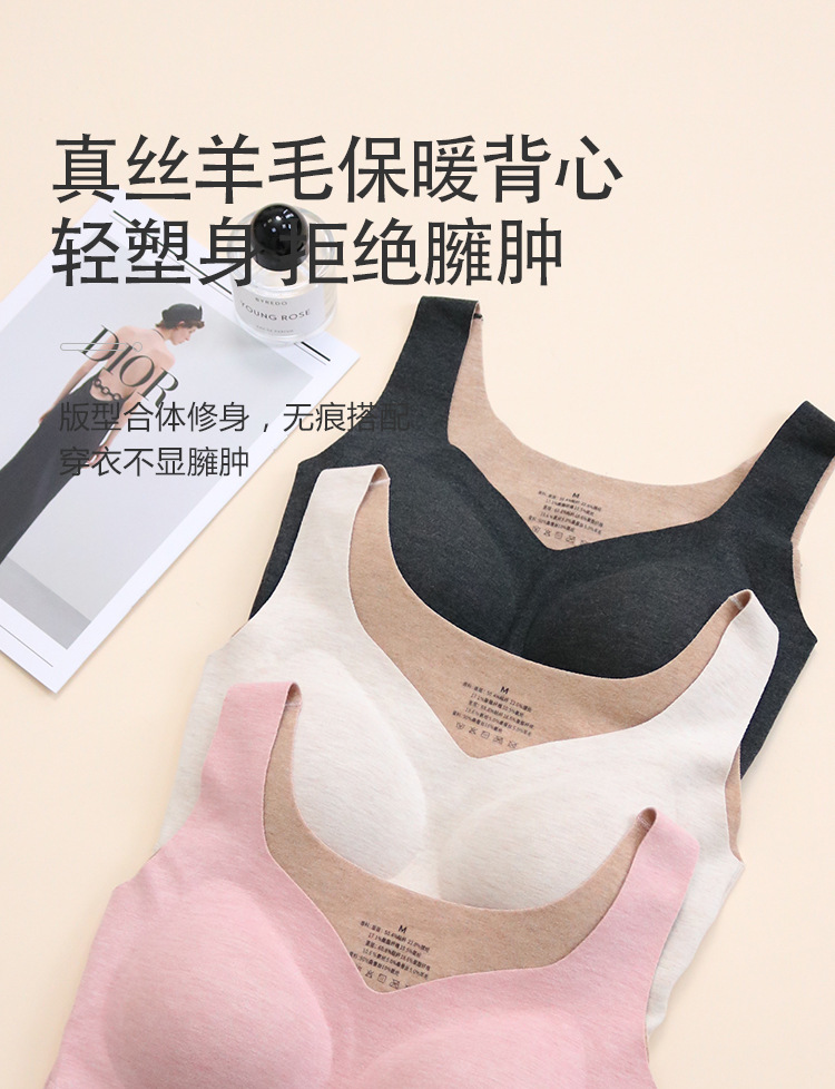TG-TG03S334真丝羊毛保暖背心女秋冬无痕吊带带胸垫加绒防寒内搭打底衫