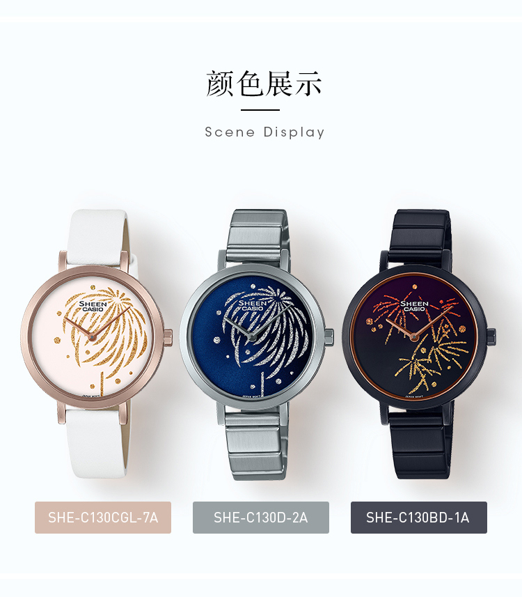 【时计廊】卡西欧手表 SHEEN “花火系列” 人造蓝宝石玻璃镜面防水优雅女表SHE-C130