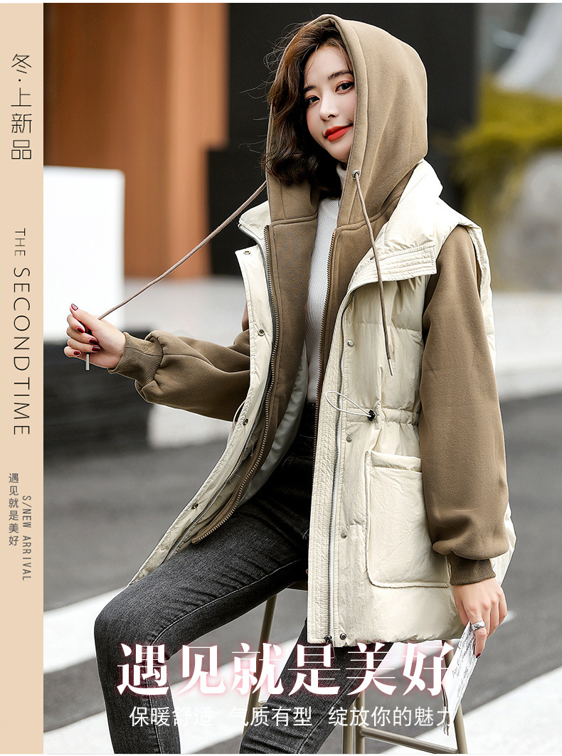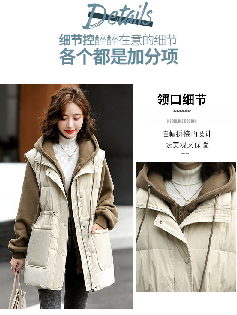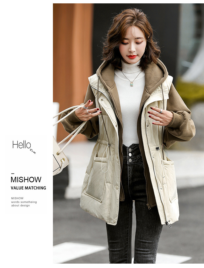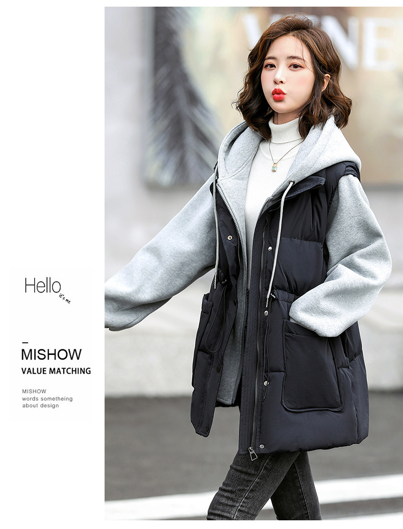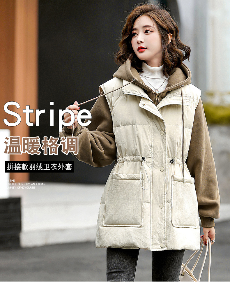 羽绒服假两件卫衣拼接2022冬季新款宽松外套时尚连帽羽绒服HR-WM21559