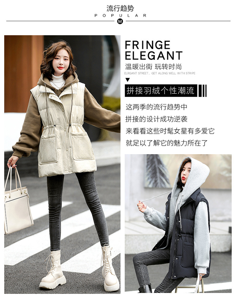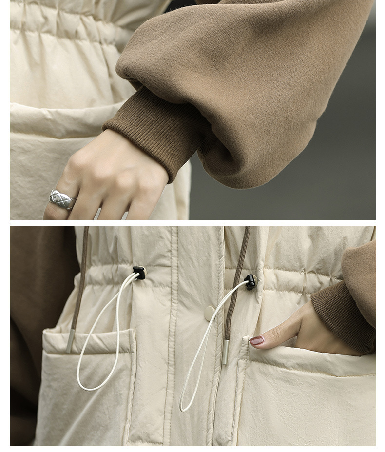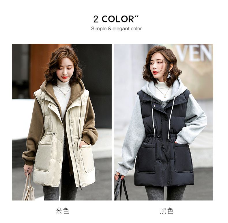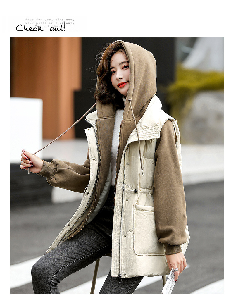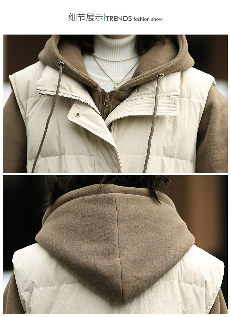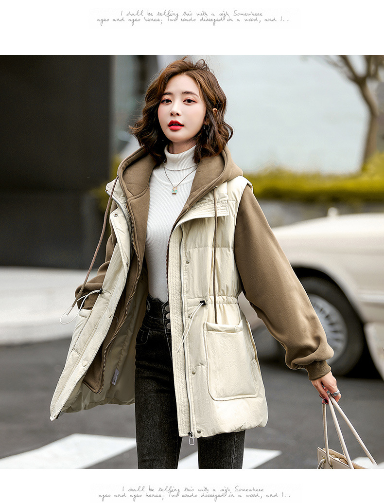 羽绒服假两件卫衣拼接2022冬季新款宽松外套时尚连帽羽绒服HR-WM21559