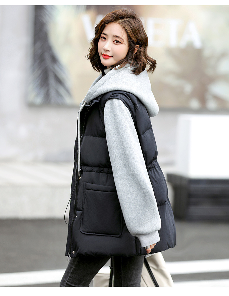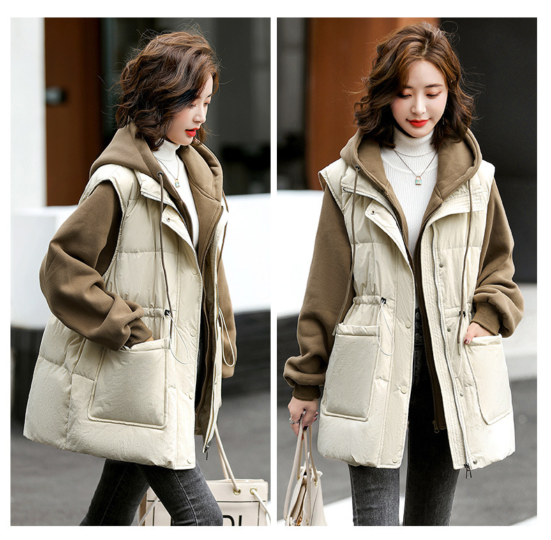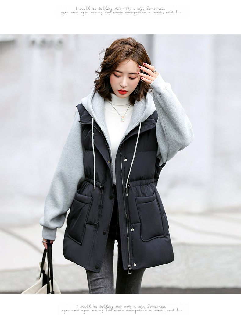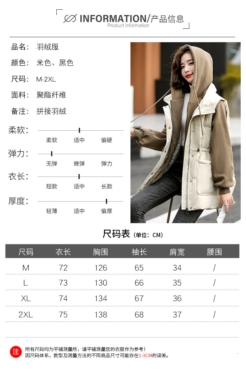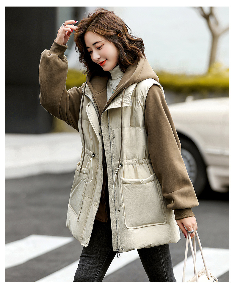 羽绒服假两件卫衣拼接2022冬季新款宽松外套时尚连帽羽绒服HR-WM21559