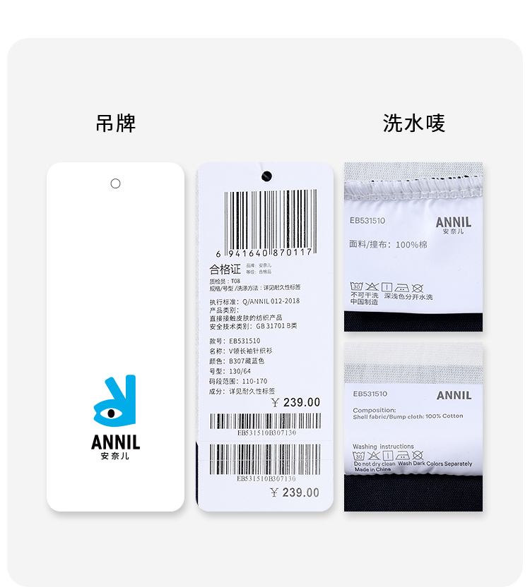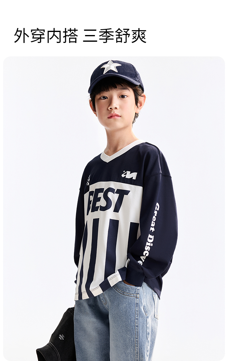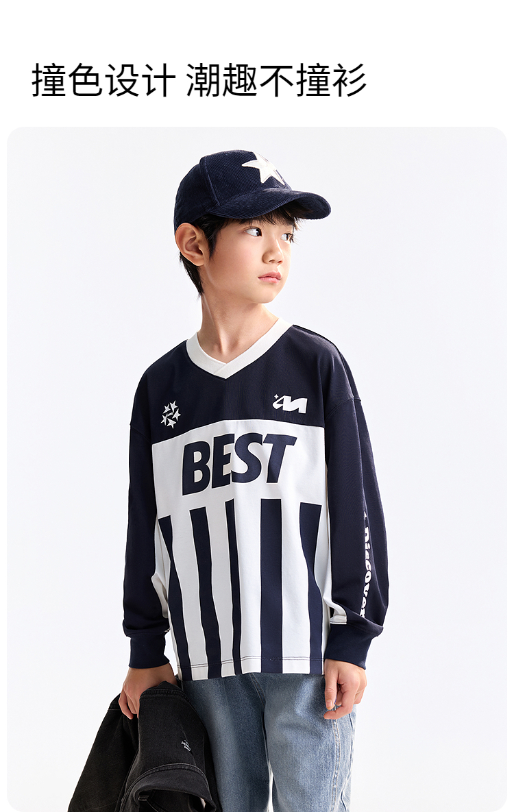 男童V领长袖针织衫秋季新款安奈儿童装EB531510