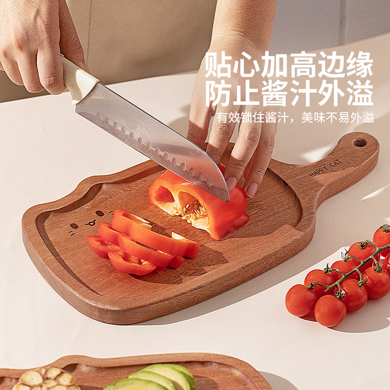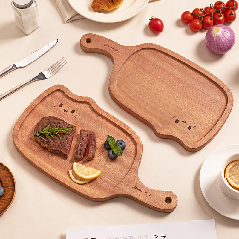 摩登主妇乌檀木牛排餐盘西餐刀叉盘三件套木质猫咪盘子托盘面包披萨盘