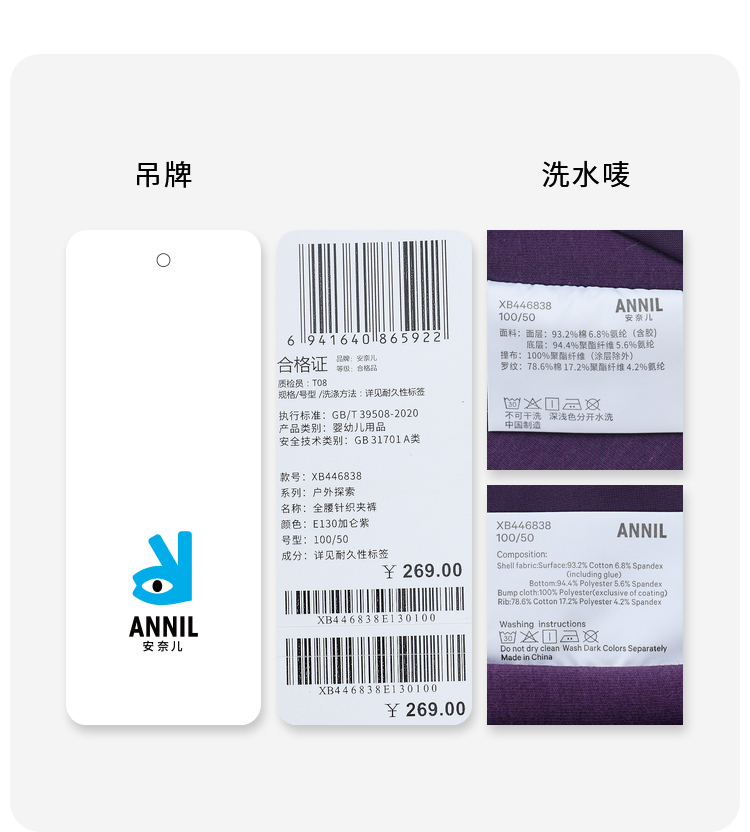 男童海岛绒保暖夹裤冬季新款安奈儿童装实体店同款XB446838