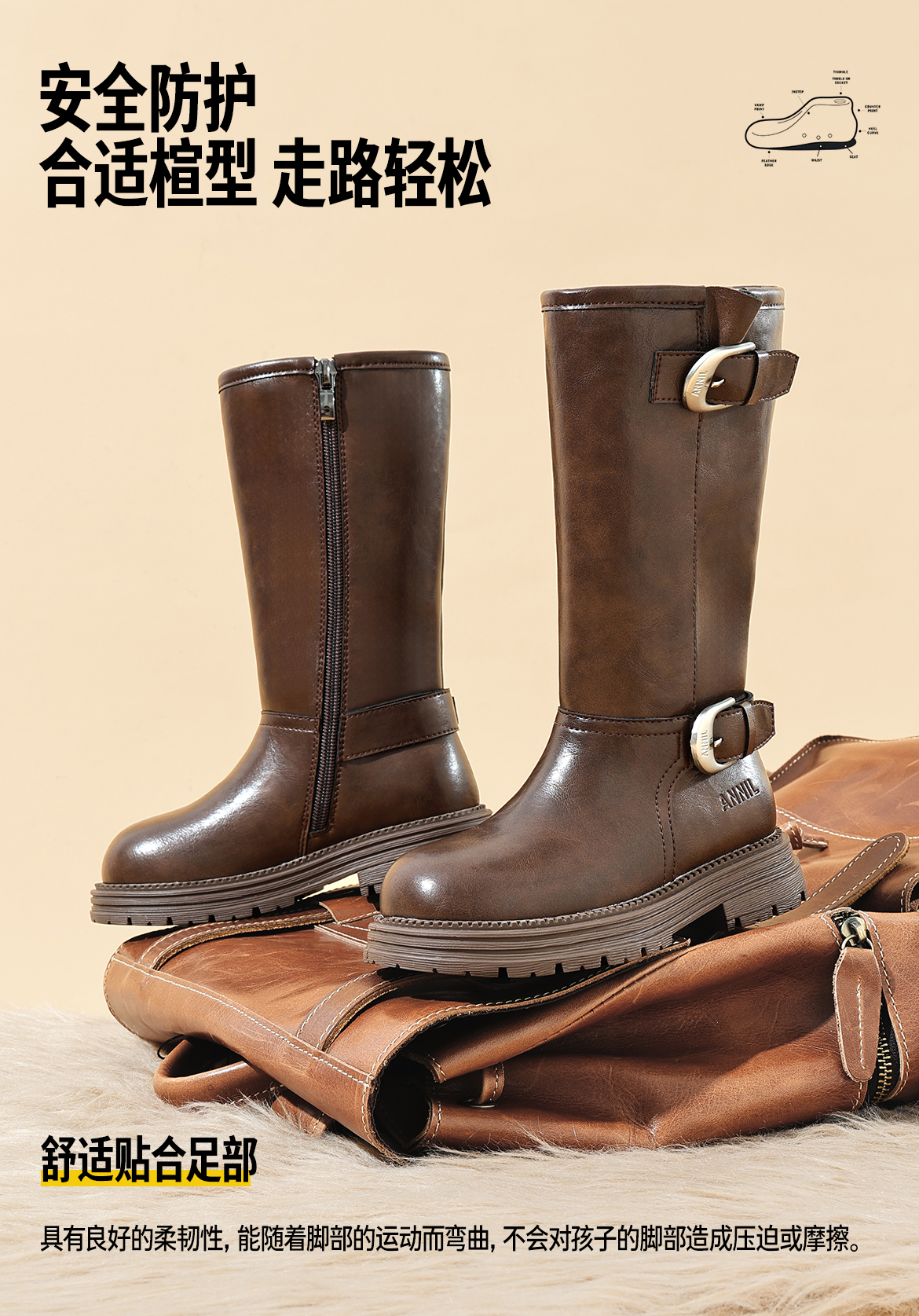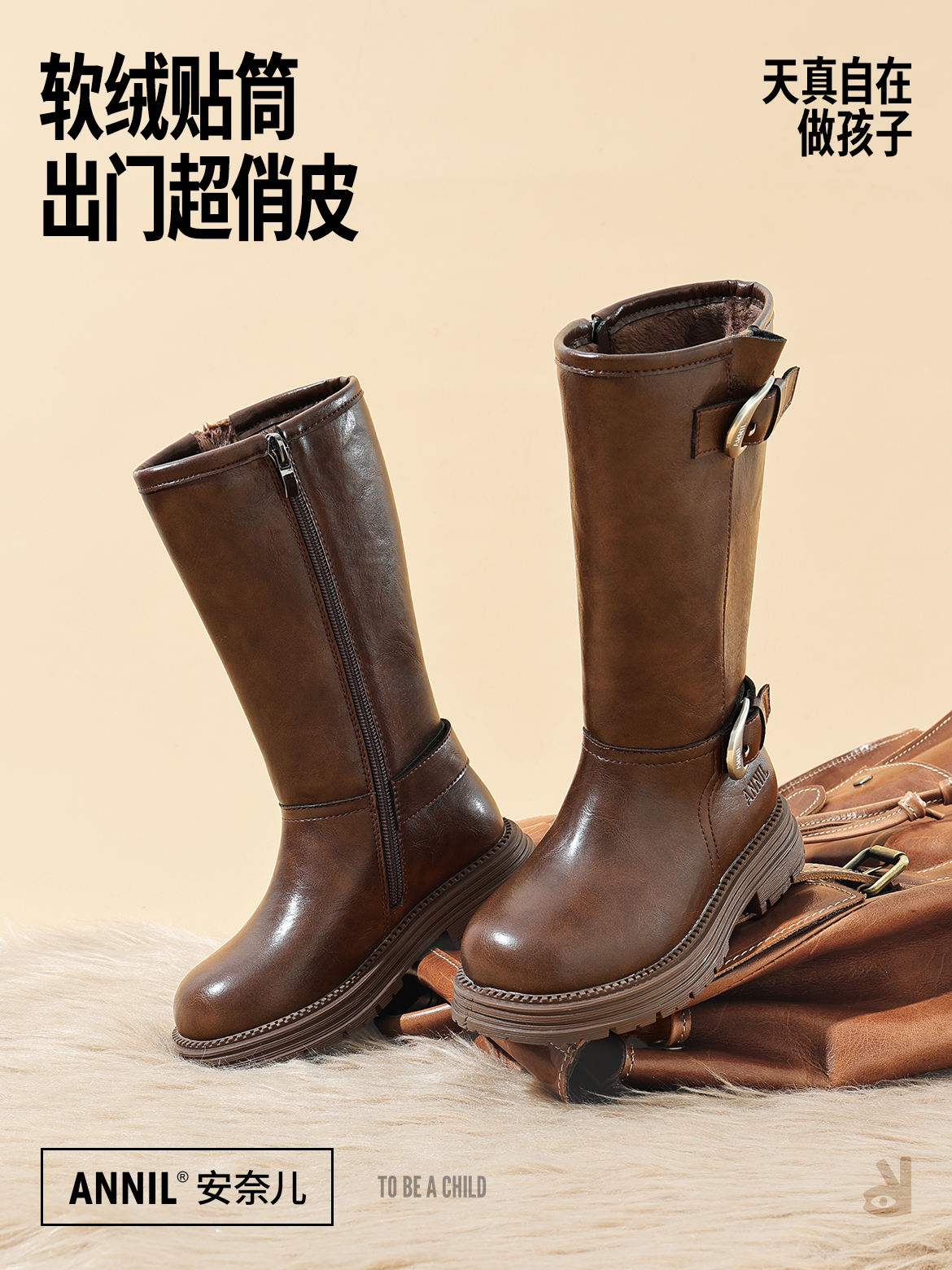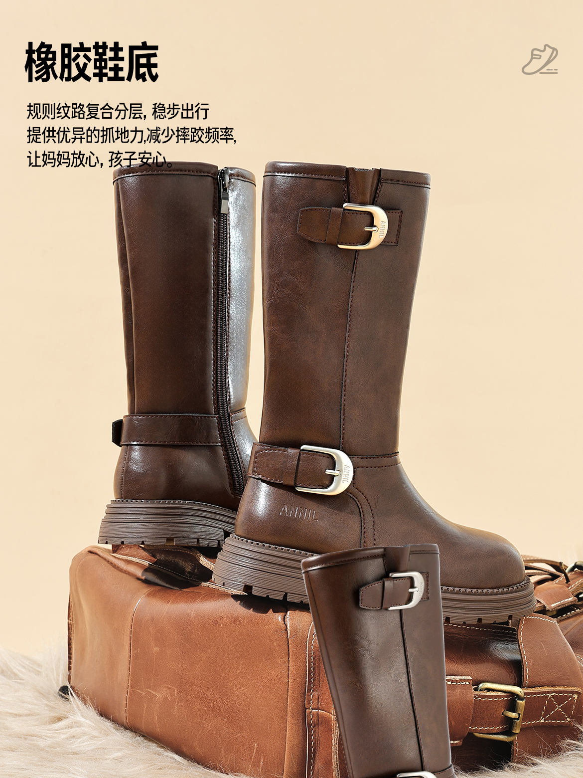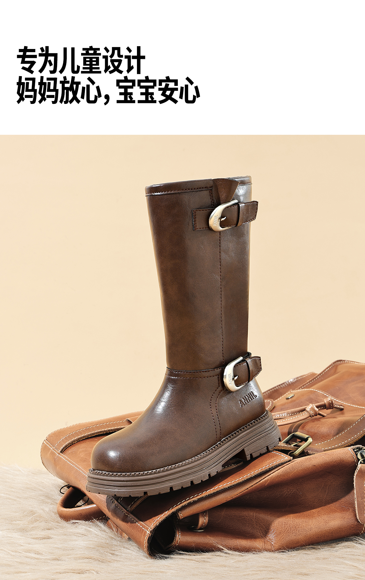 ANNIL/安奈儿童鞋女童6-12岁女童马丁靴冬季新款加绒加厚皮面靴子HG5409644