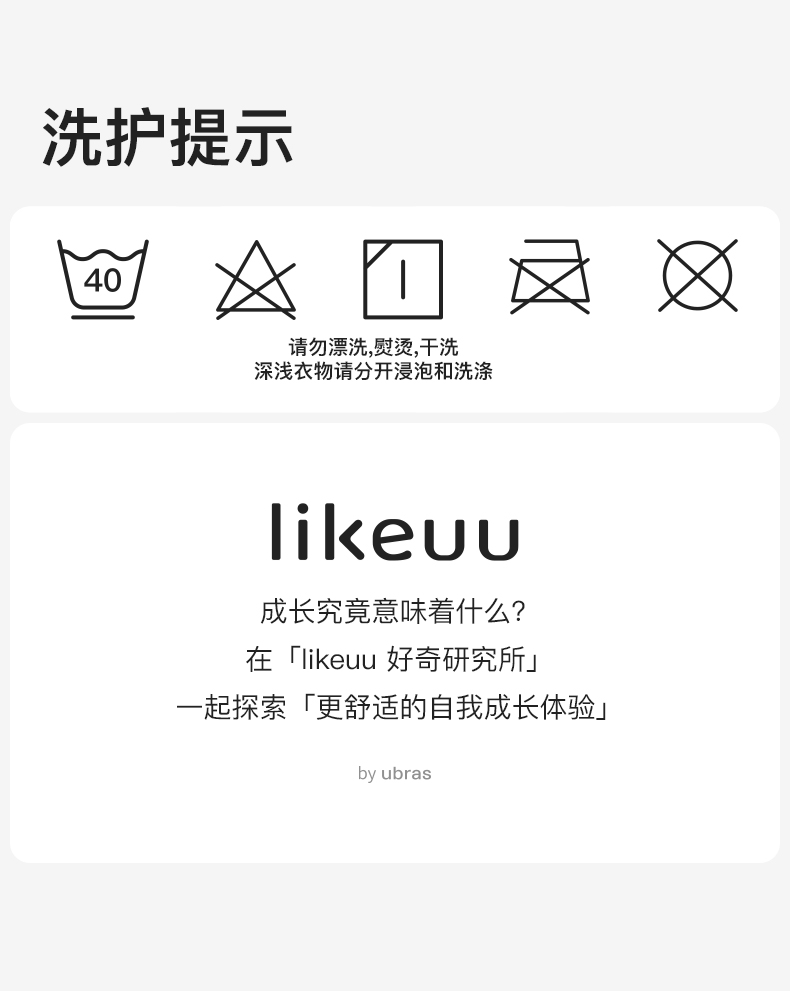 - likeuu是专注于为6~15岁的青少年创造柔软、无束缚的成长体验,以好奇心为灵感的成长发育期贴身衣物品牌。likeuu的产品覆盖内衣、内裤、保暖衣、家居服、运动等品类。