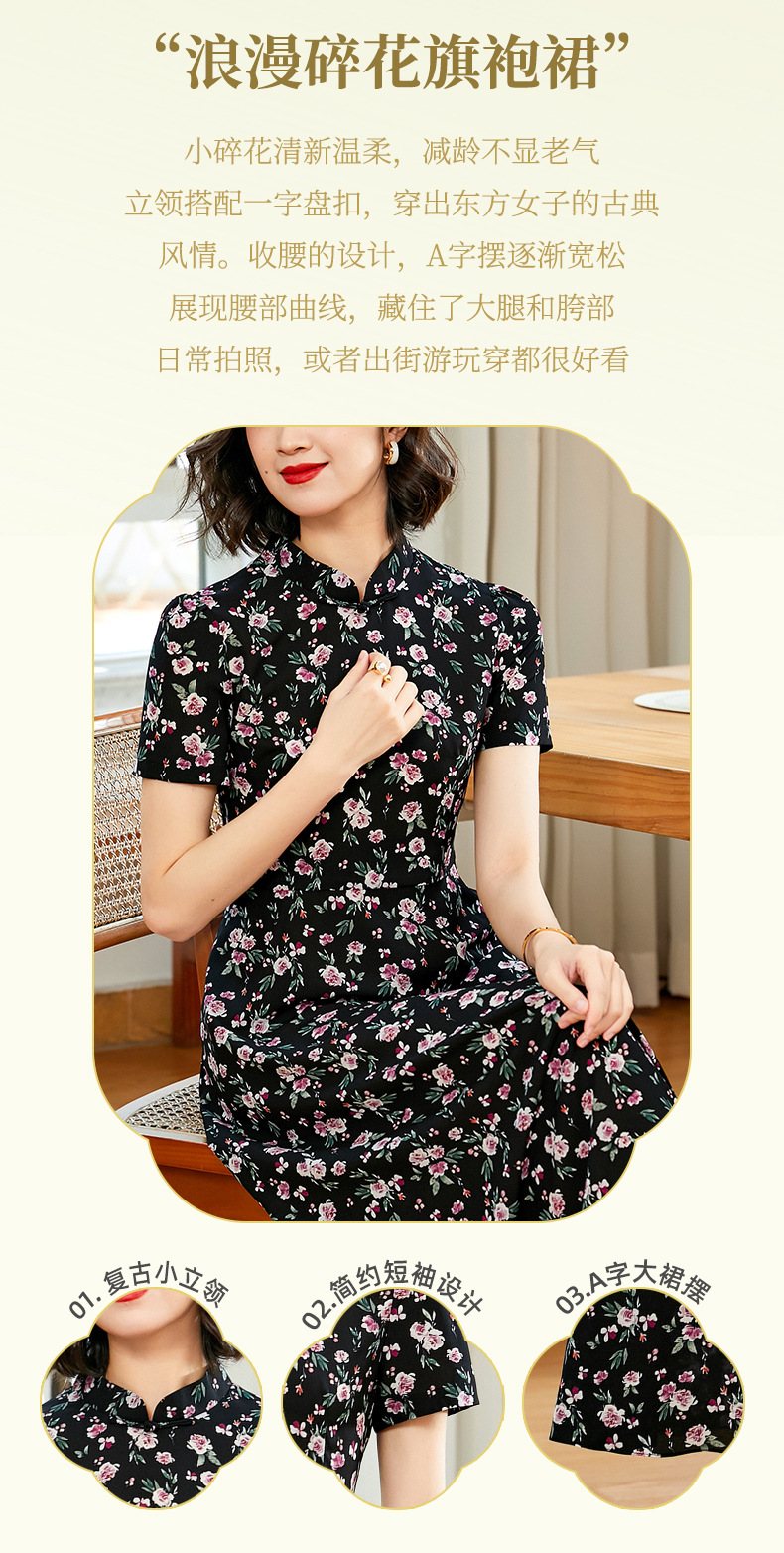 「自」全新升级【铂金会员247/天猫329/差价82】(44131)洛诗琳气质新中式碎花连衣裙2025夏季国风改良显瘦旗袍裙