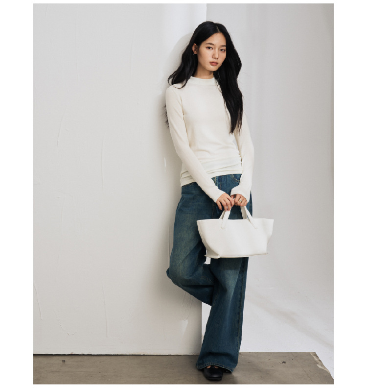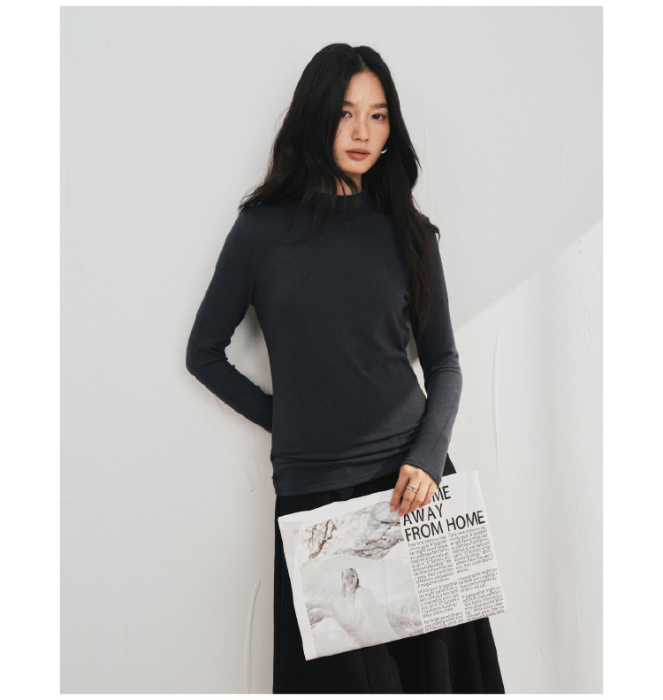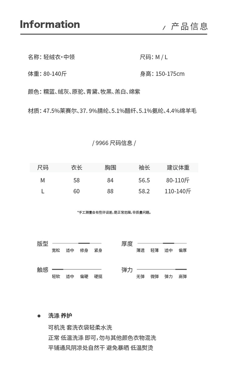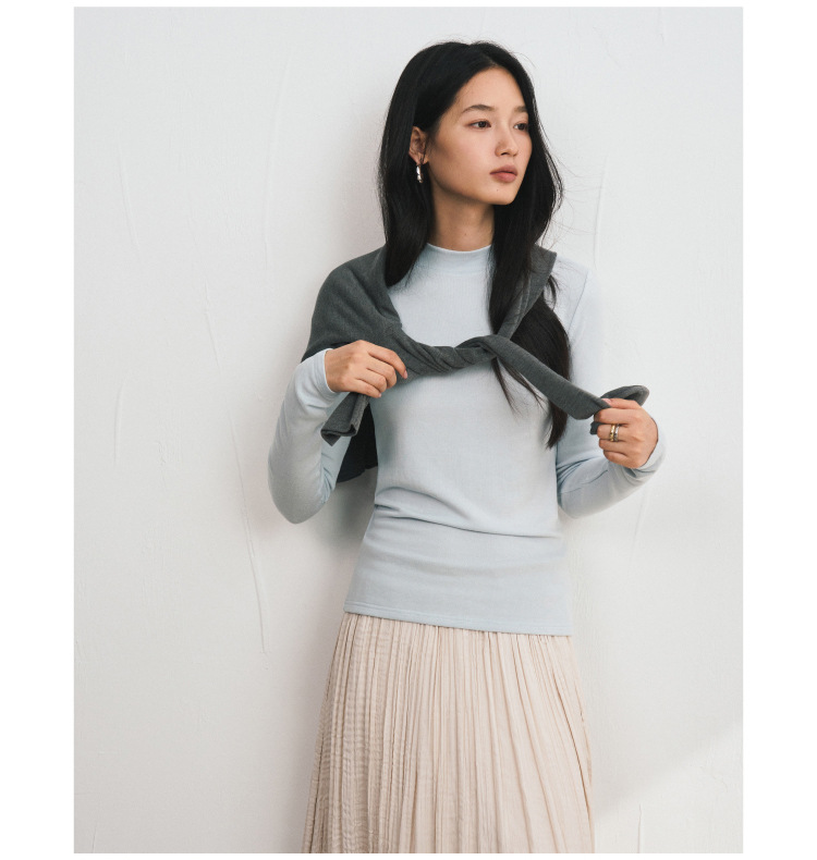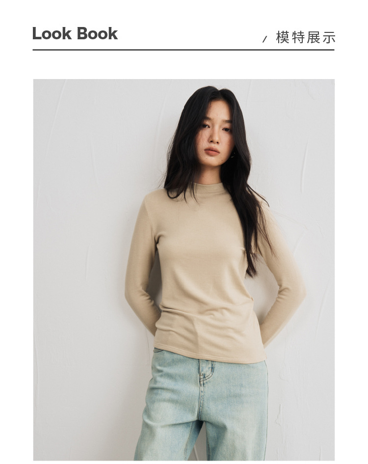 【2025秋冬新品】天丝醋酸羊毛・中领轻绒衣 莱赛尔打底衫上衣简约纯色保暖长袖T恤