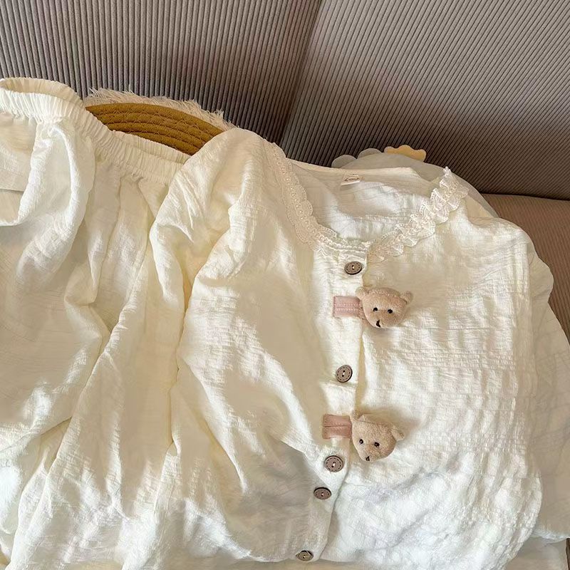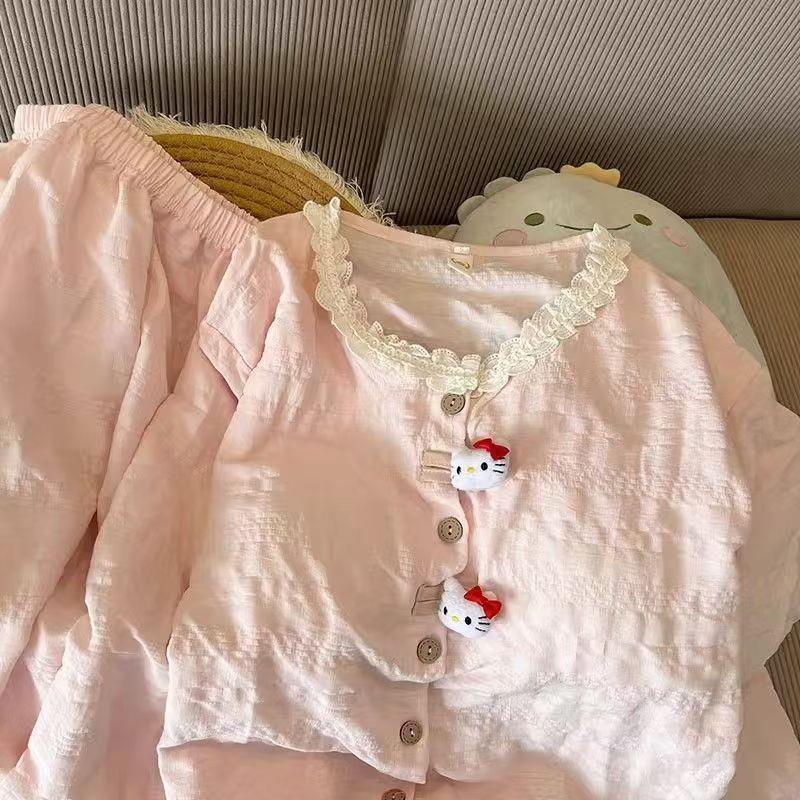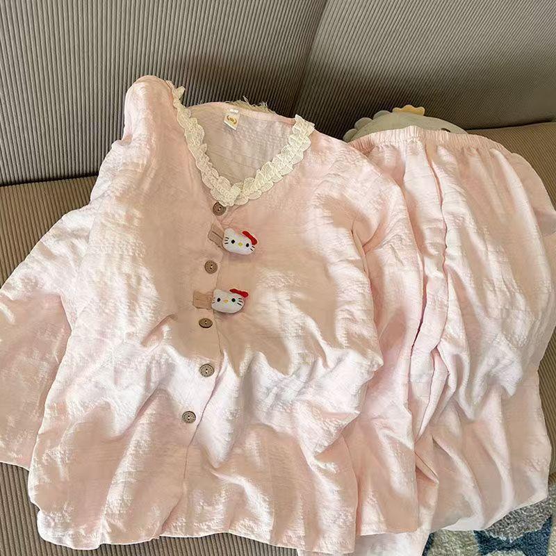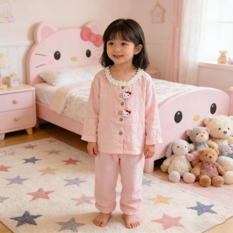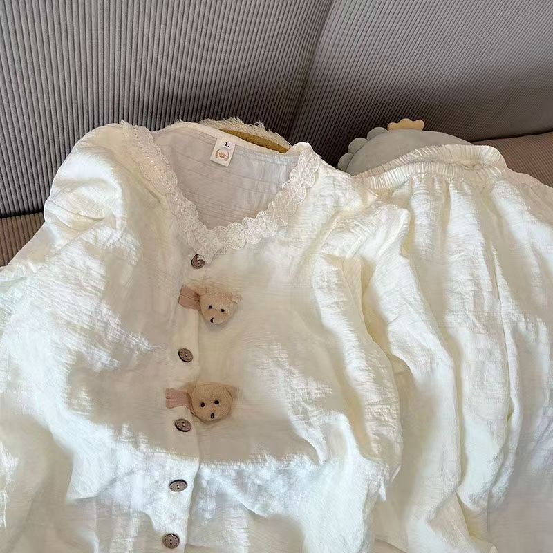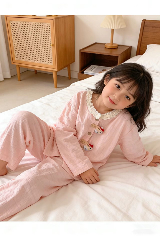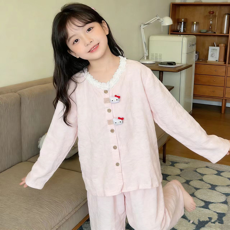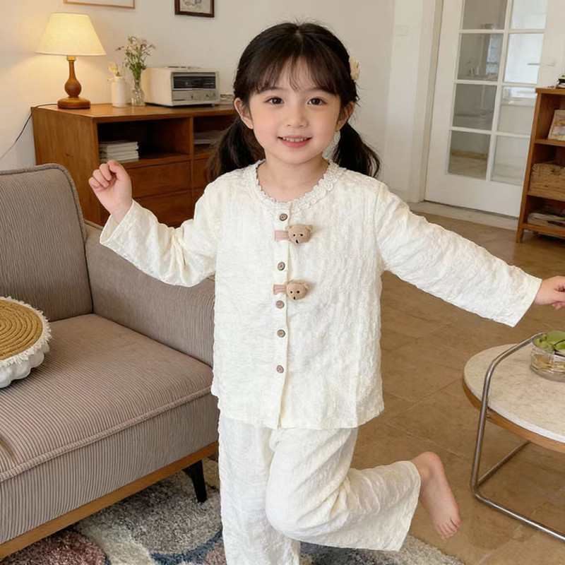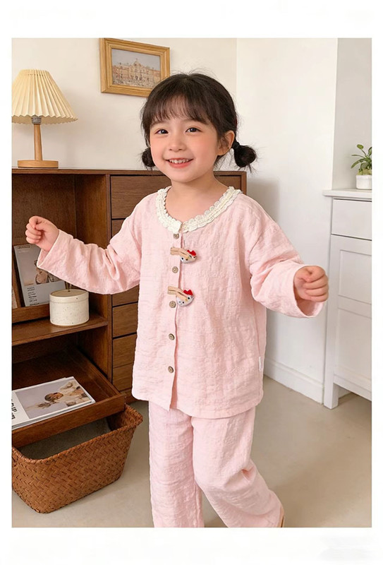 儿童云朵棉家居服套装春夏款女童休闲花边开衫睡衣宝宝卡通空调服90-170