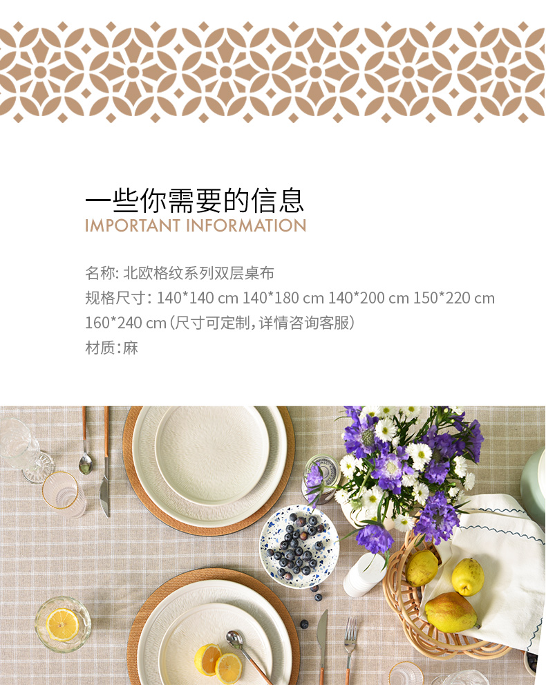 北欧格纹系列双层桌布简约格纹纯棉台布