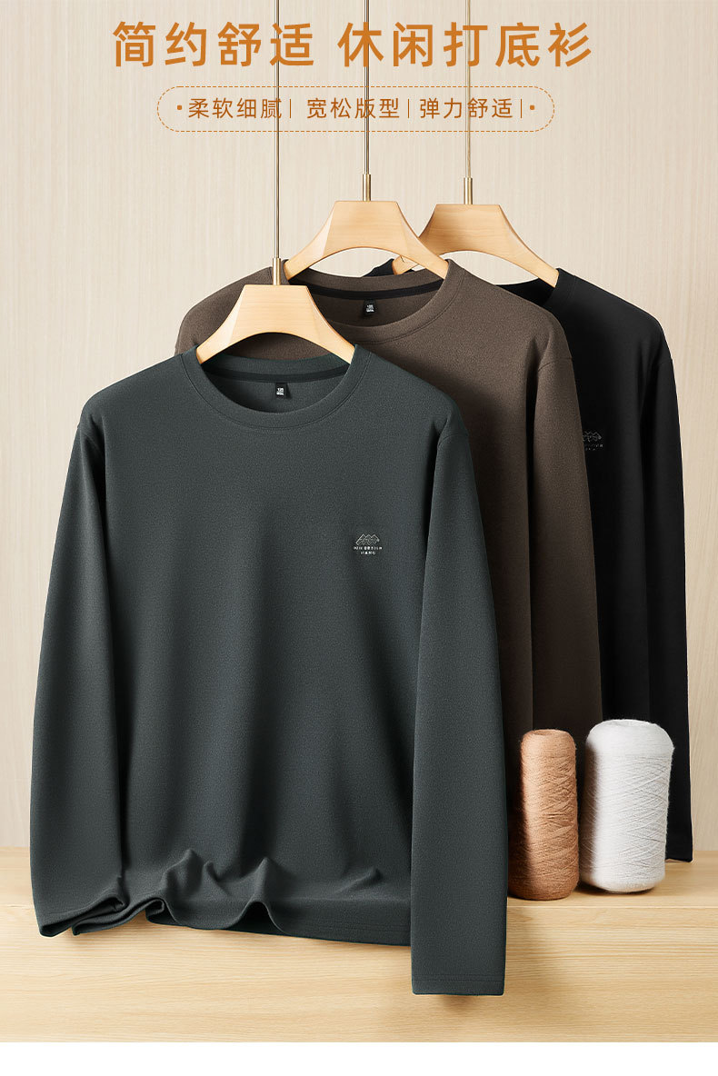 【DWP】大依优型大码男装秋季圆领长袖打底衫简约舒适休闲百搭长袖T恤