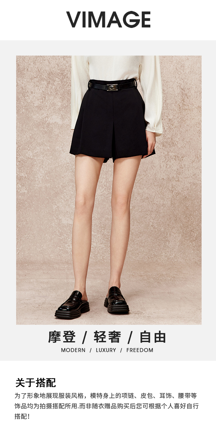 VIMAGE纬漫纪时尚休闲显瘦高腰直筒短裤秋季新款V2205807