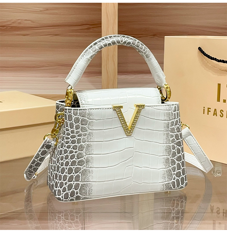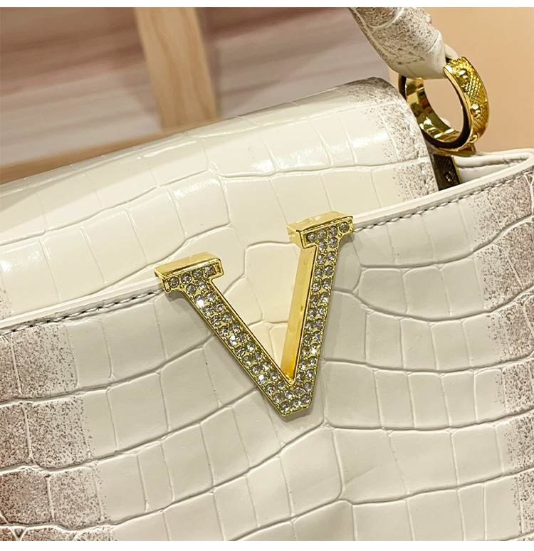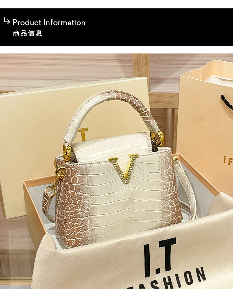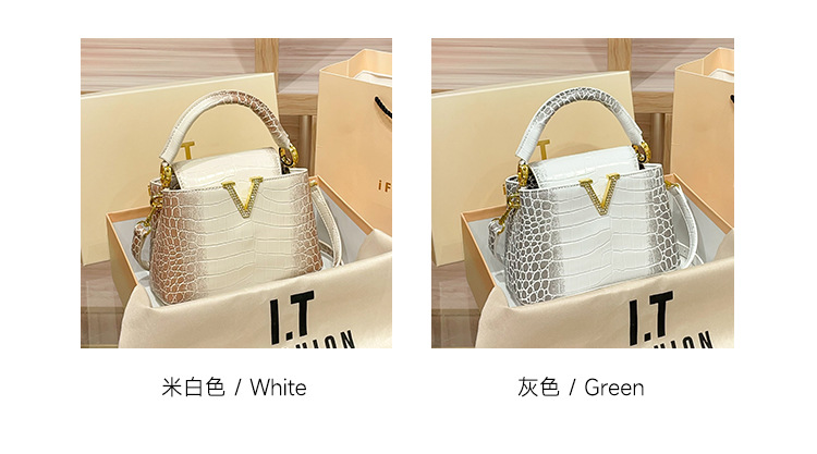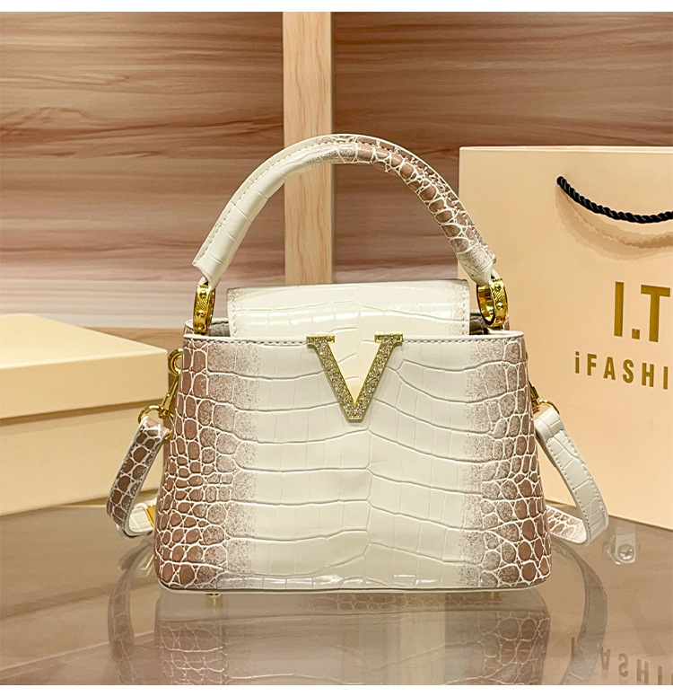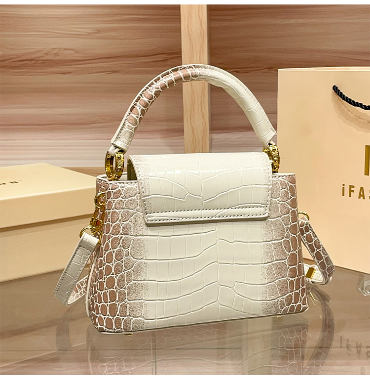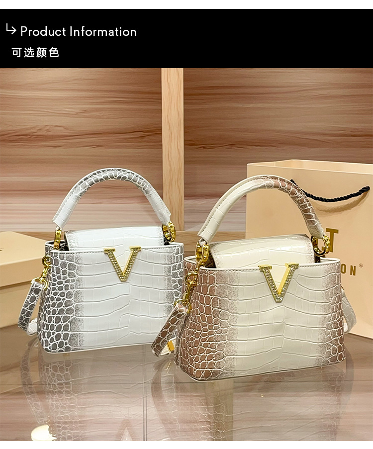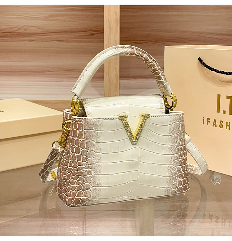 丁摩 【高品质】女包鳄鱼纹真皮渐变色手提包包新款时尚V字高级感单斜挎小包5ZF-6161