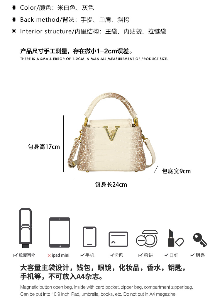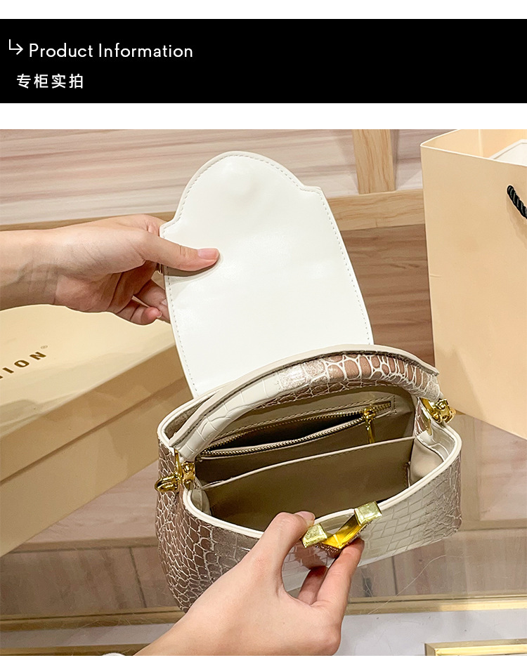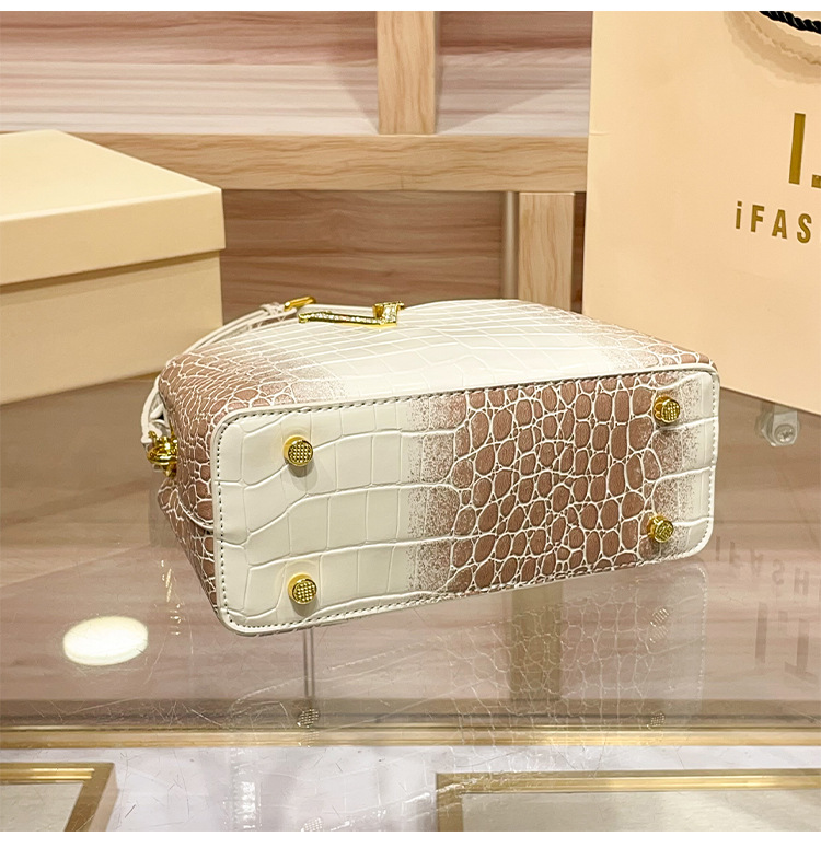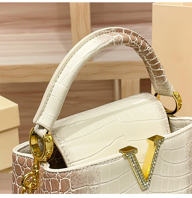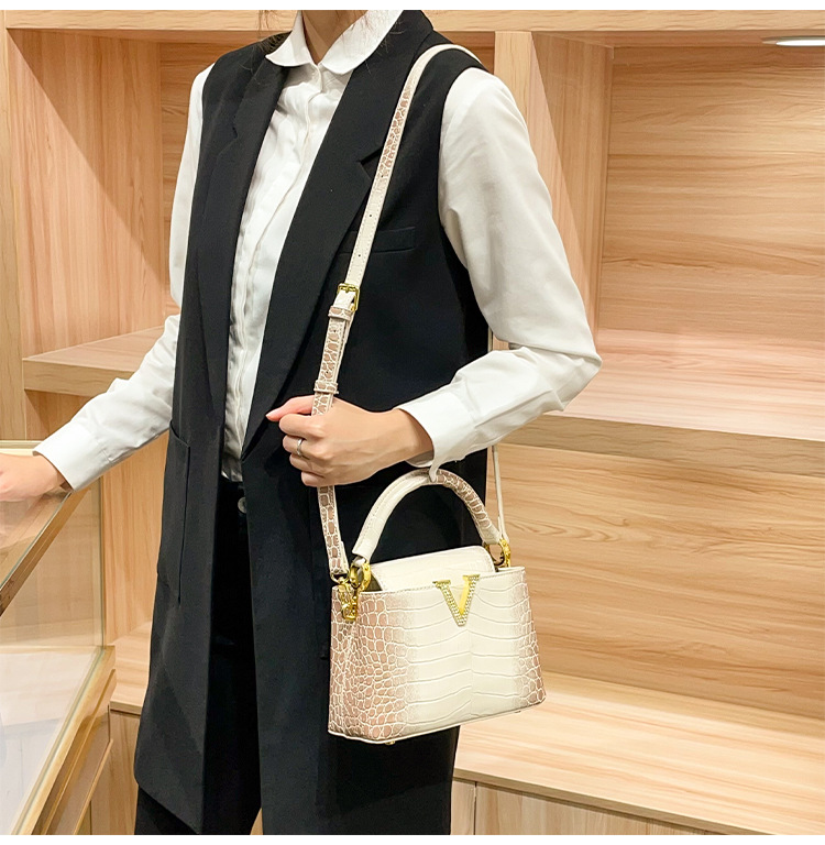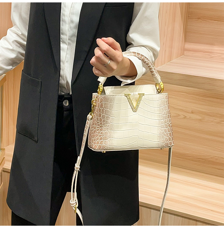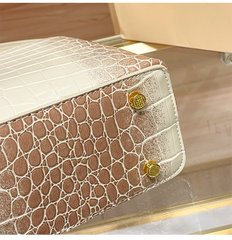 丁摩 【高品质】女包鳄鱼纹真皮渐变色手提包包新款时尚V字高级感单斜挎小包5ZF-6161