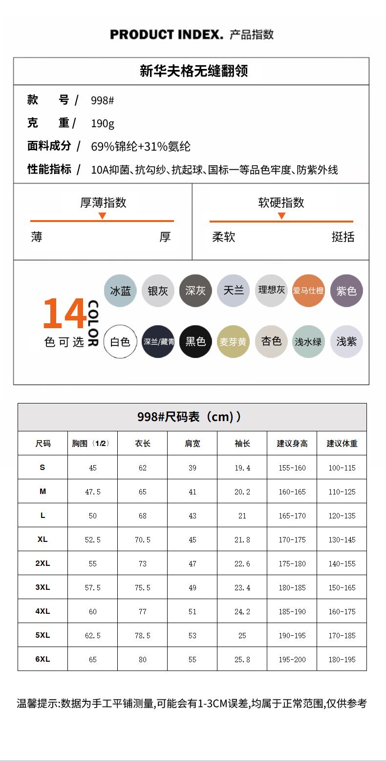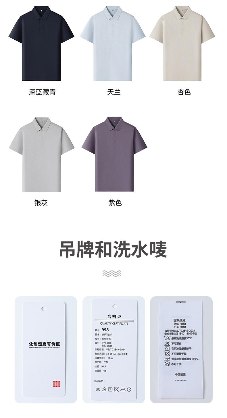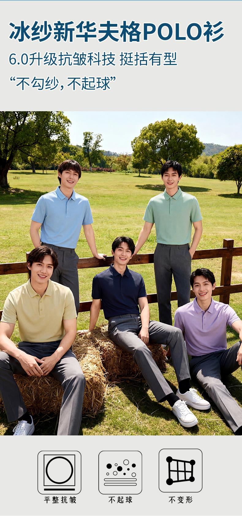 190G新华夫格无缝科技纯色二级贴胶布领短袖(四合扣) ZT-998#