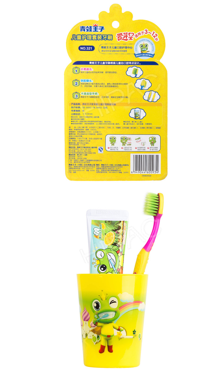 青蛙王子儿童牙刷牙膏水杯套装健齿防蛀JPY带授权招加盟代理