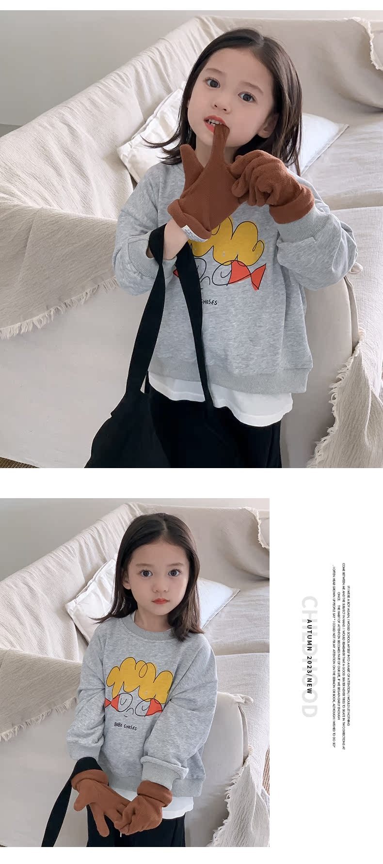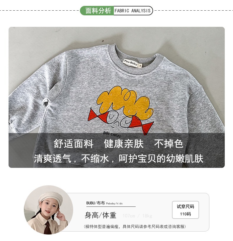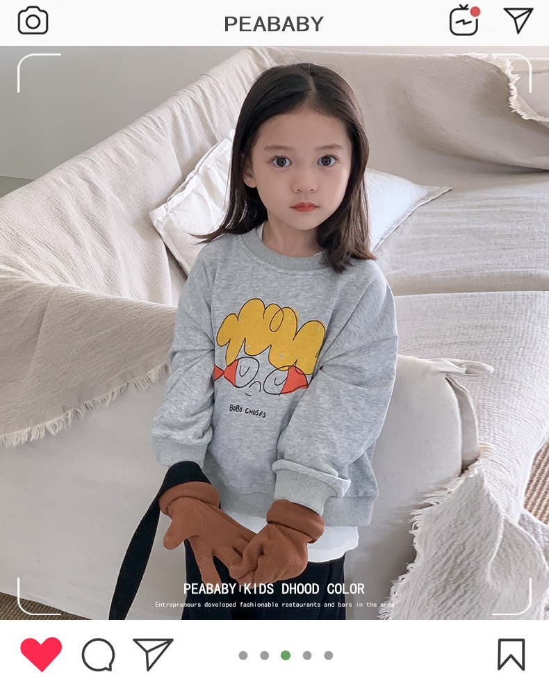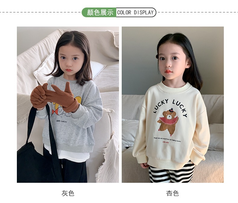 【韩版卡通设计可爱又时尚,柔软棉质面料,穿着舒适保暖】儿童洋气卡通长袖卫衣 春秋装新款 男女童棉韩版套头 外套上衣潮款-QQ