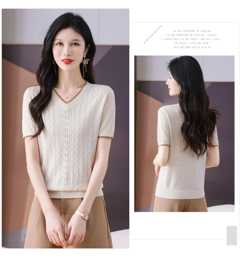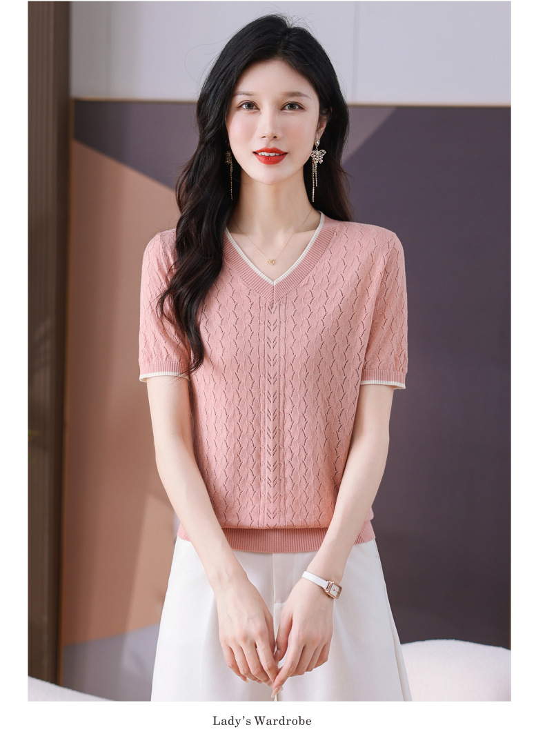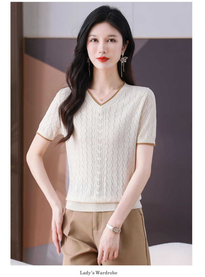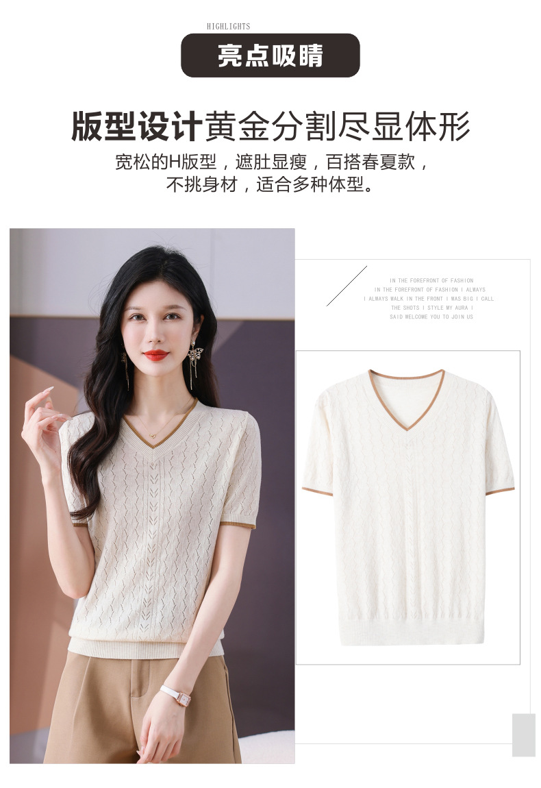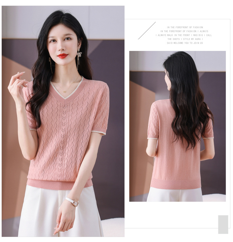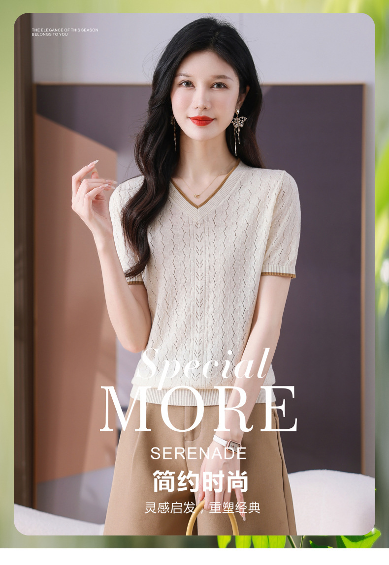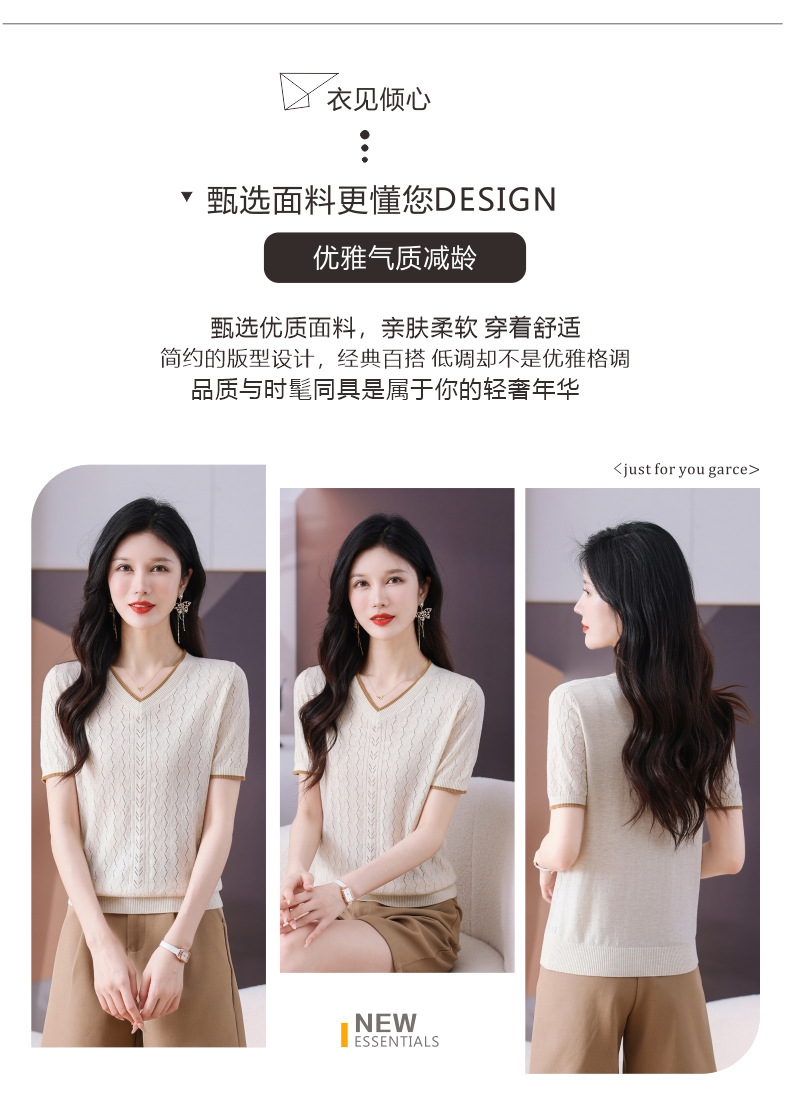 CC-101-355夏装女2025年新款V领年轻减龄天丝针织衫镂空打底衫上衣潮