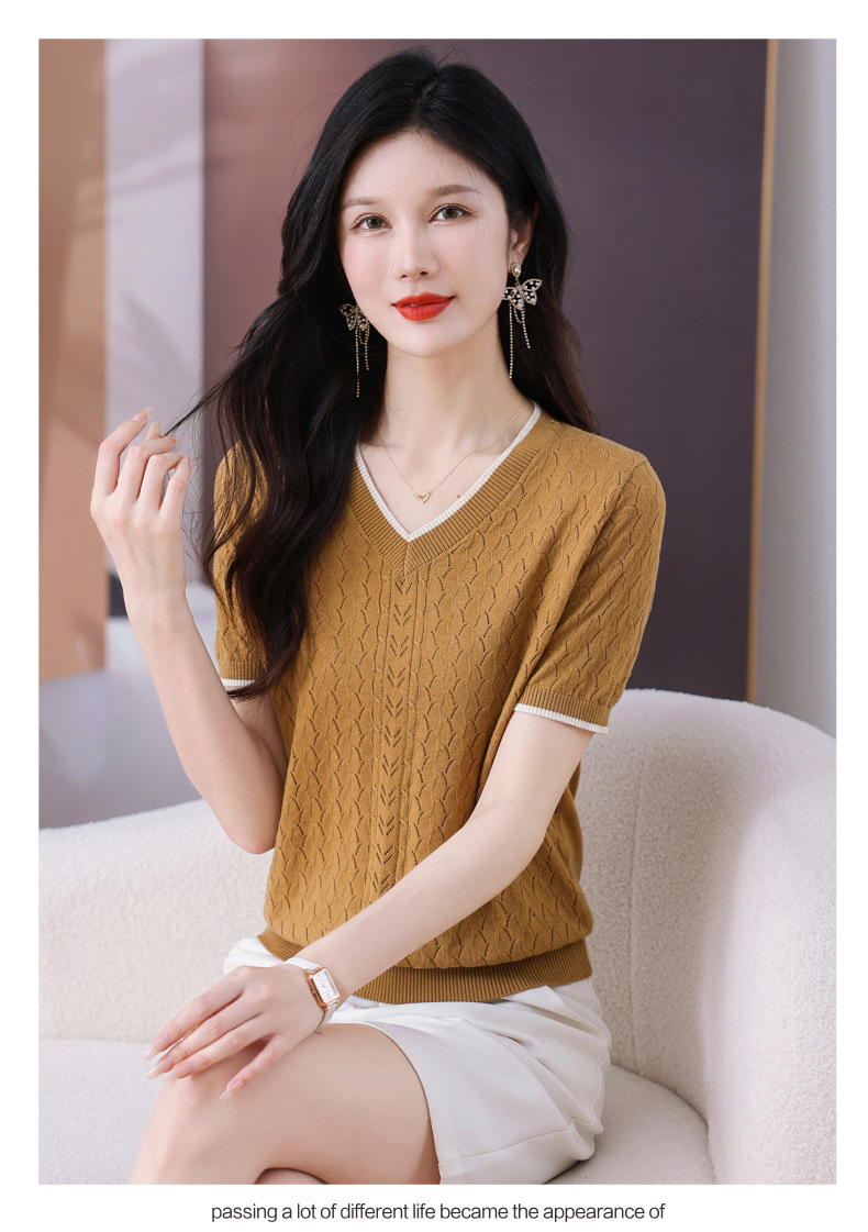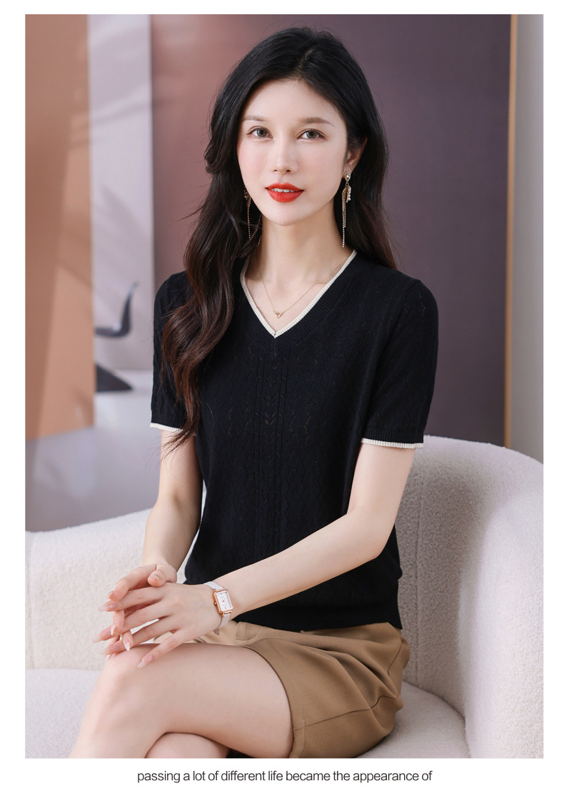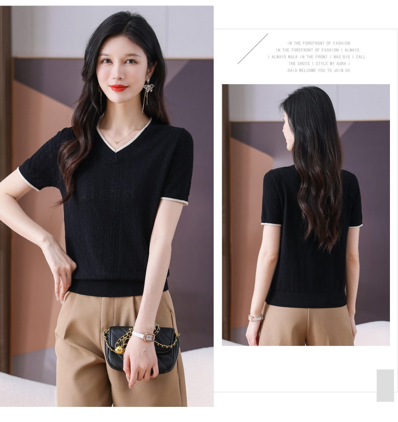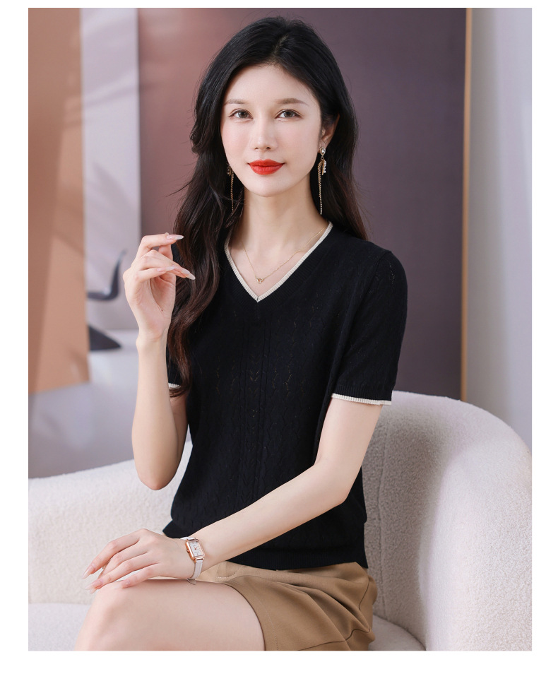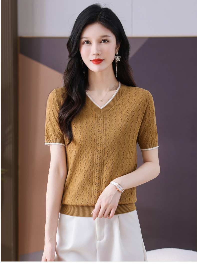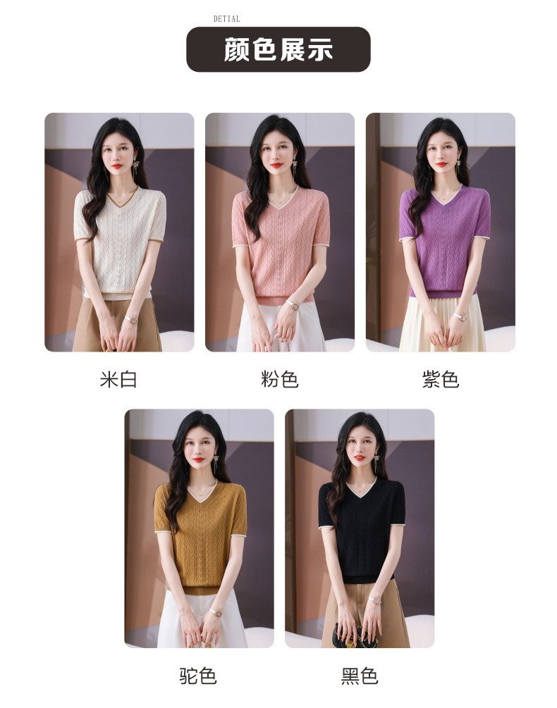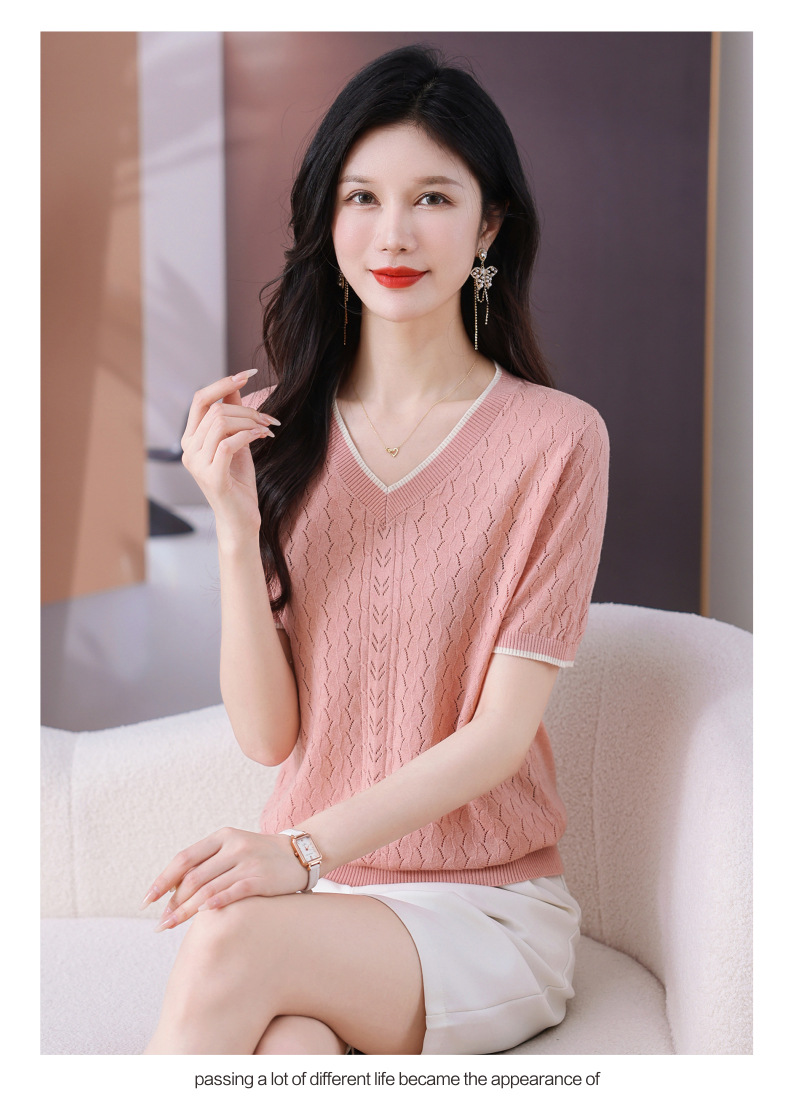 CC-101-355夏装女2025年新款V领年轻减龄天丝针织衫镂空打底衫上衣潮